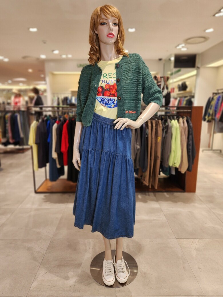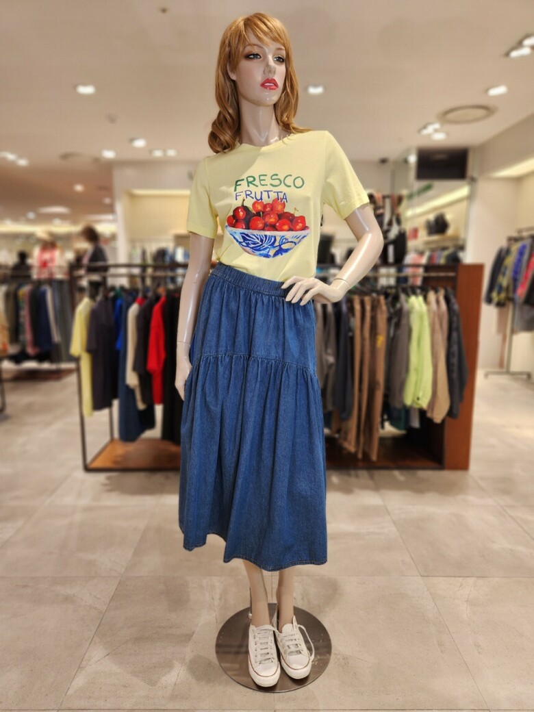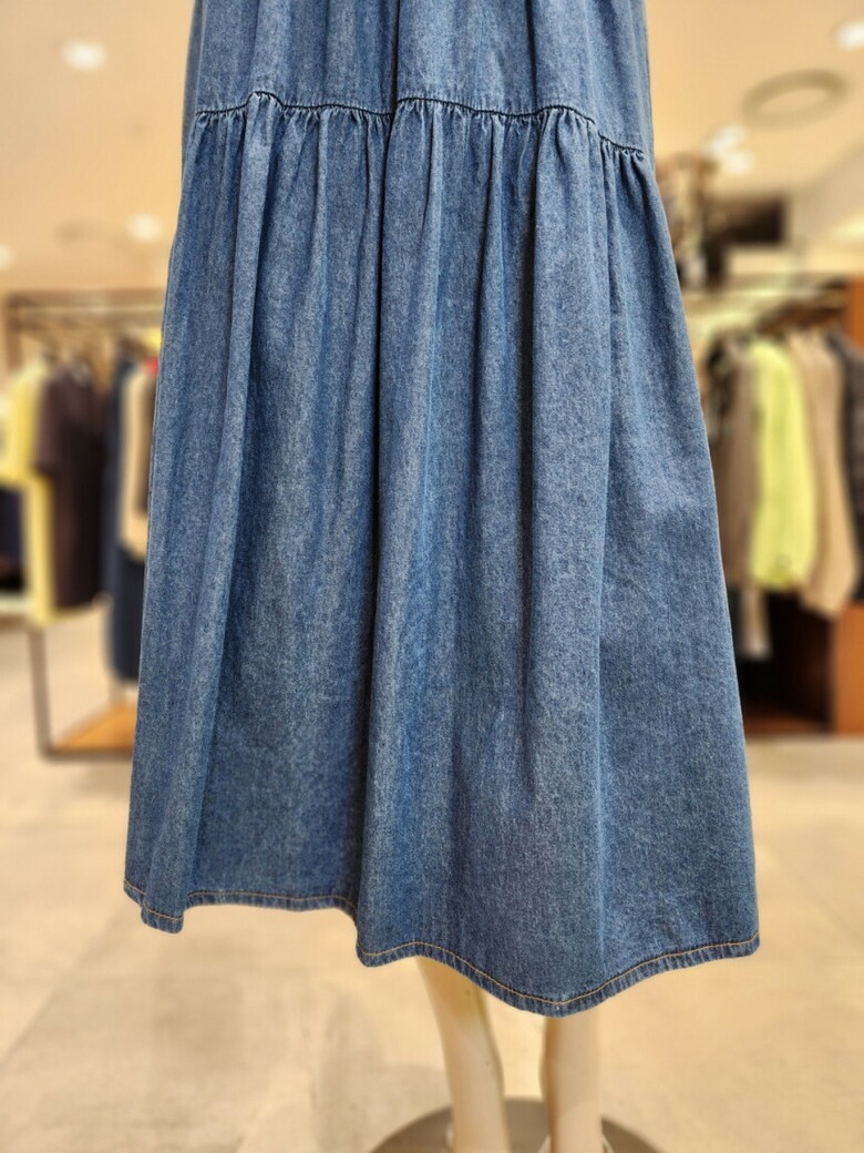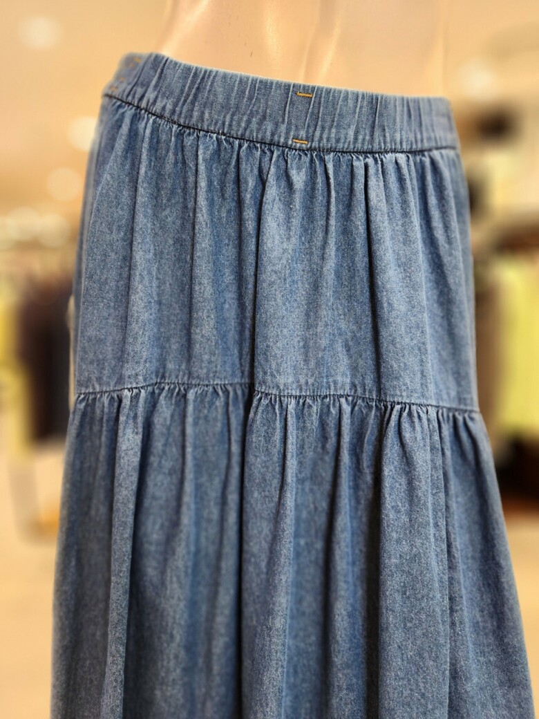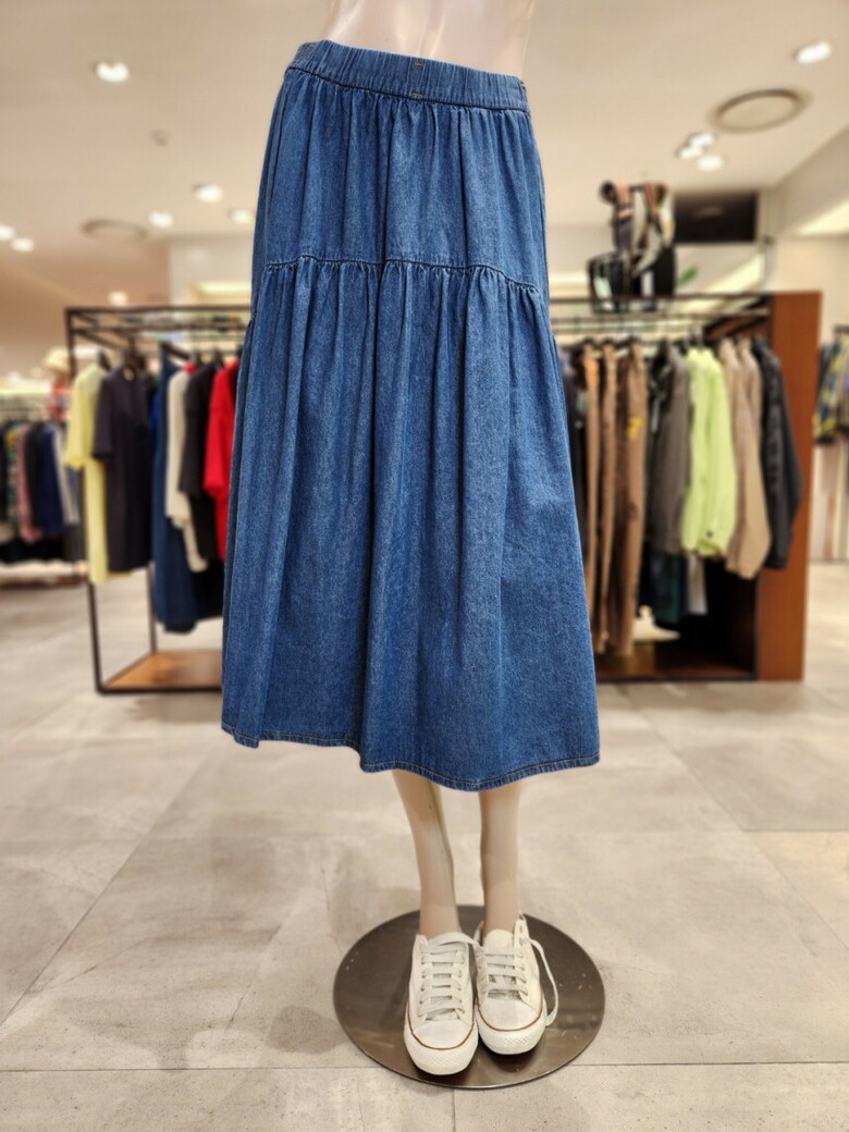 얇은 두께의 면소재를 사용한 롱 스커트입니다