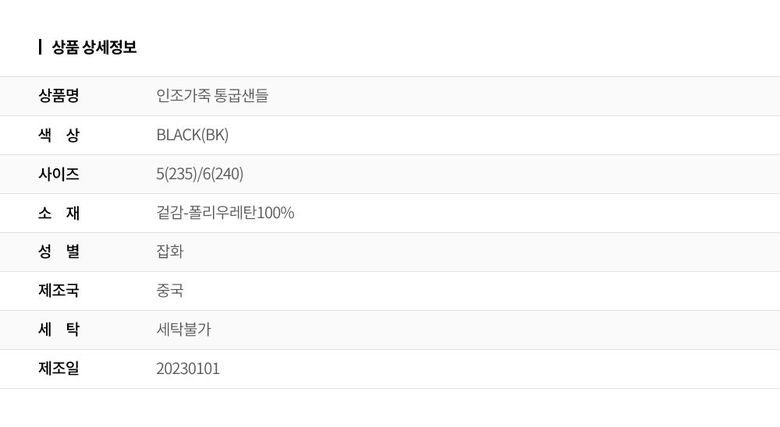 | 1. 제품 소재 (운동화인 경우에는 겉감, 안감을 구분하여 표시) | 겉감-폴리우레탄100% |