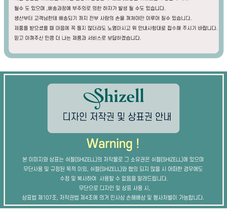 상품불량에 의한 반품, A/S, 품질보증 및 피해보상 등에 관한 사항은 소비자 분쟁해결기준(공정거래위원회 고시) 구매자가 미성년자인 경우에는 상품 구입시 법정대리인이 동의하지 아니하면 미성년자 본인 또는 법정대리인이 구매취소 할 수 있습니다. |