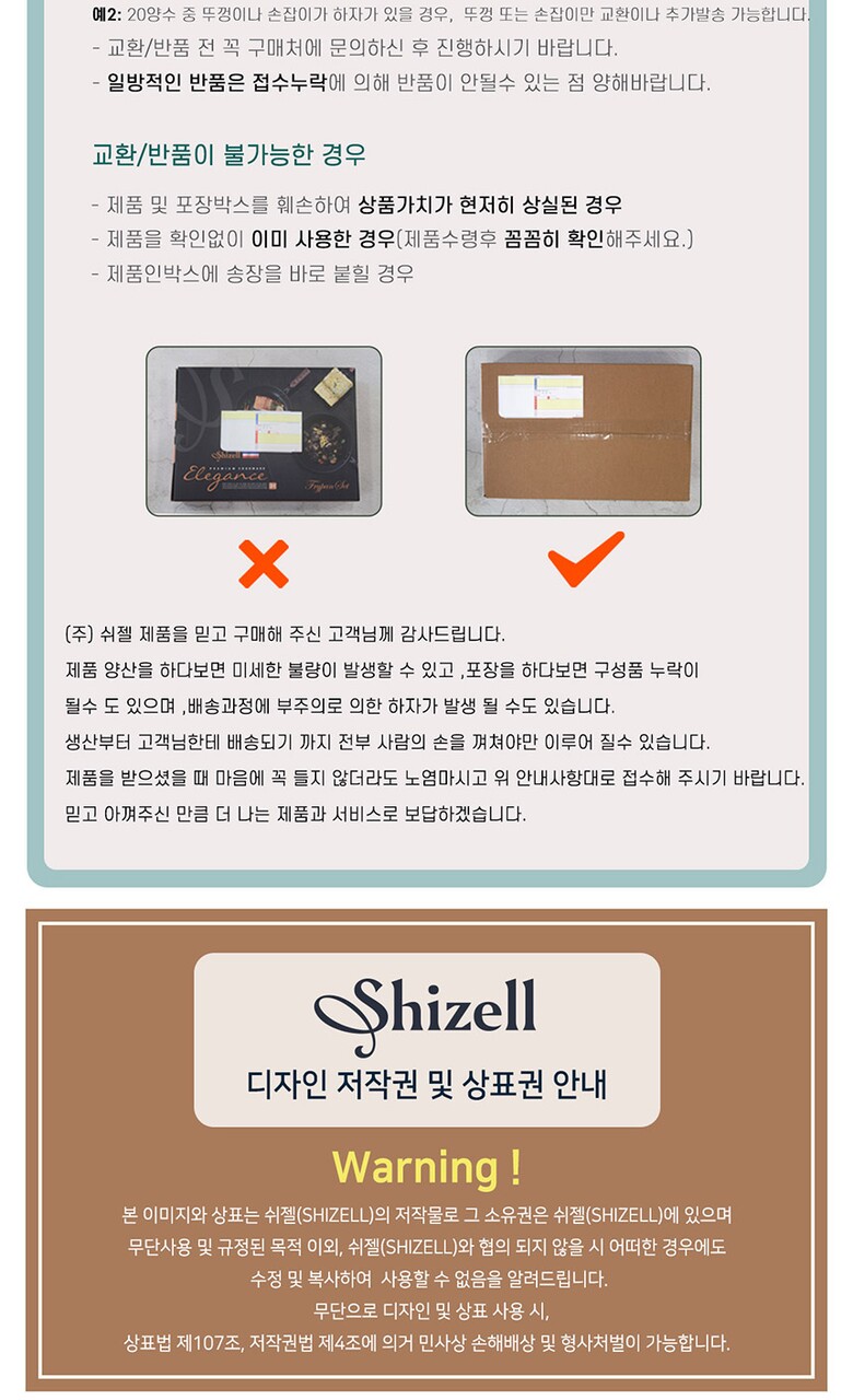 상품불량에 의한 반품, A/S, 품질보증 및 피해보상 등에 관한 사항은 소비자 분쟁해결기준(공정거래위원회 고시) 구매자가 미성년자인 경우에는 상품 구입시 법정대리인이 동의하지 아니하면 미성년자 본인 또는 법정대리인이 구매취소 할 수 있습니다. |