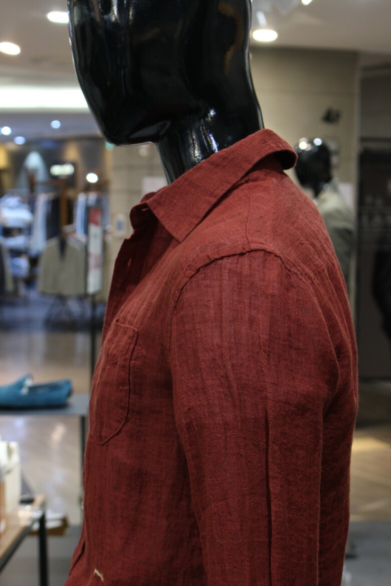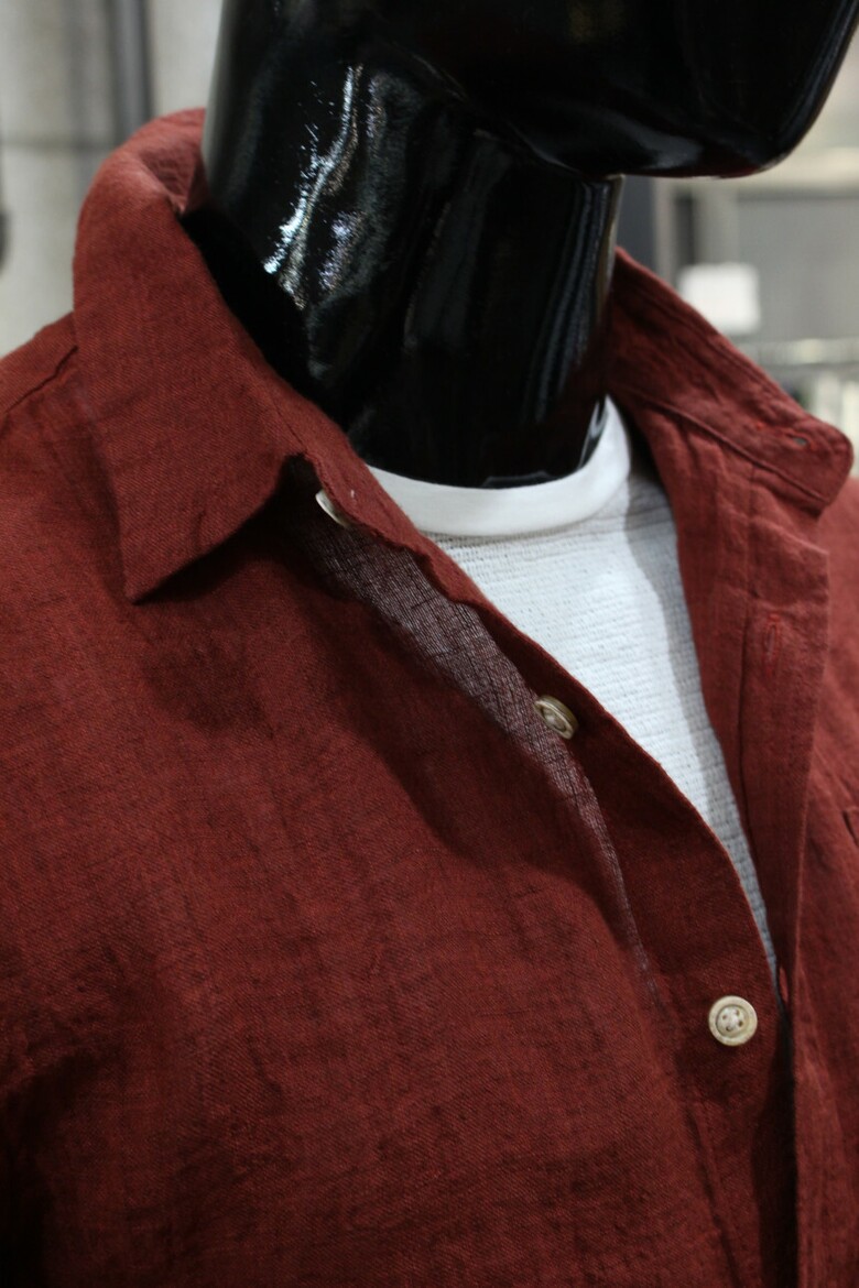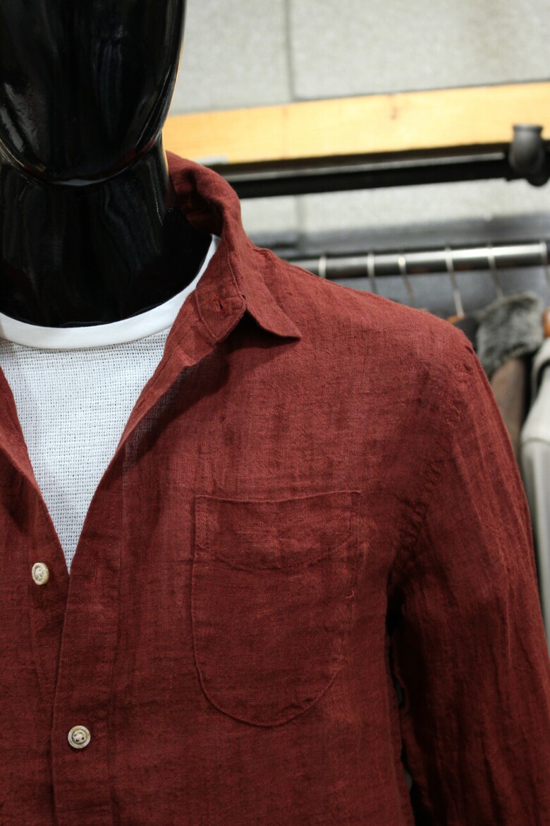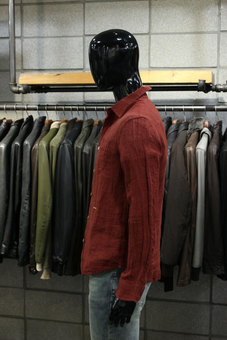 강렬한 레드컬러의 워싱린넨셔츠입니다