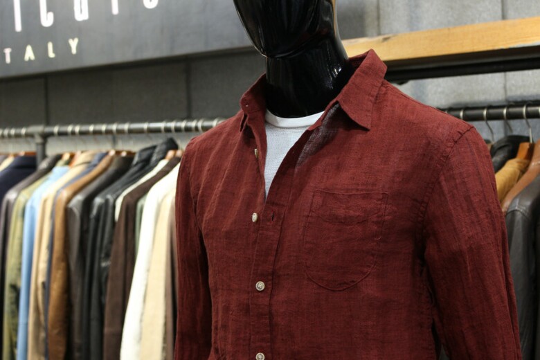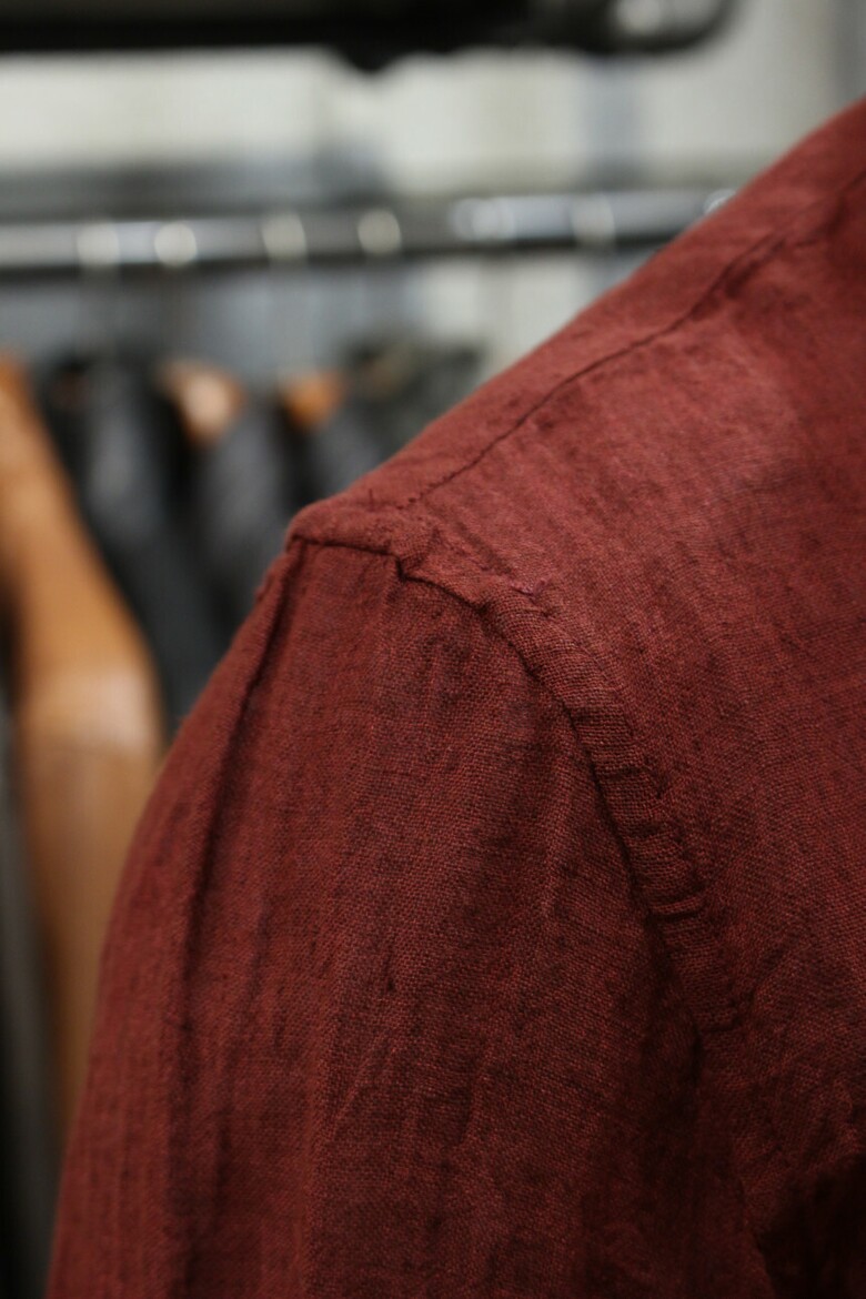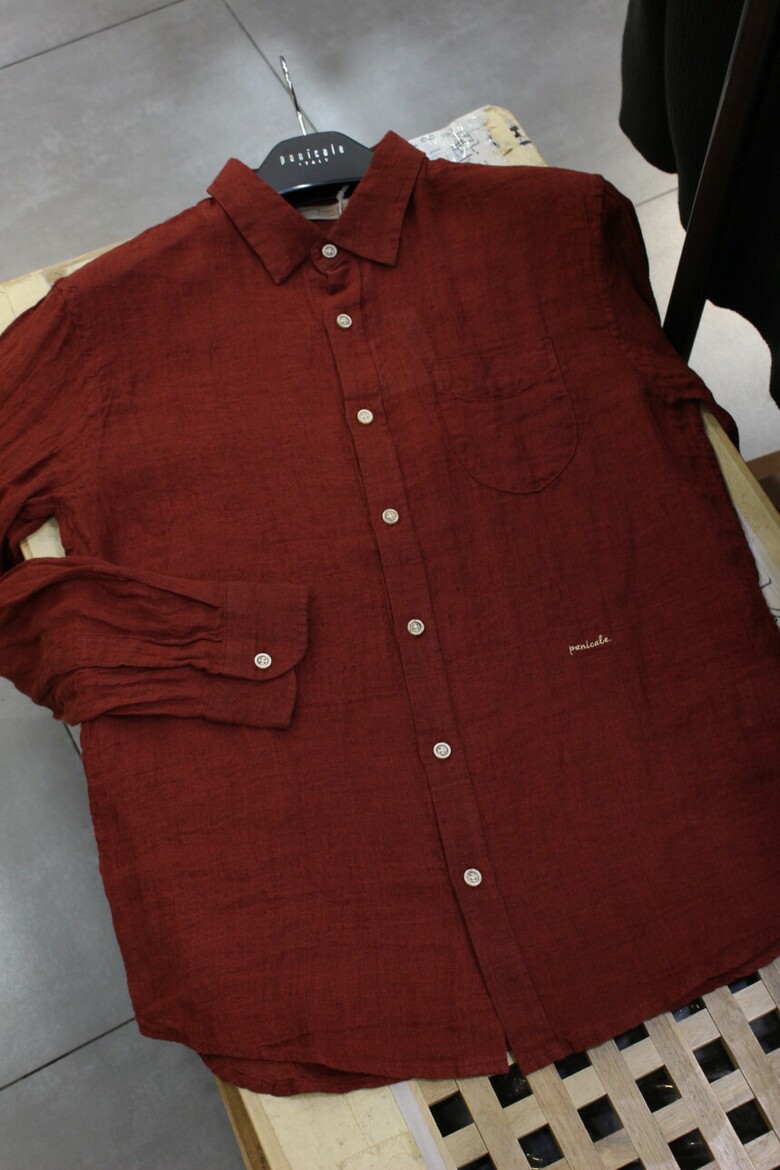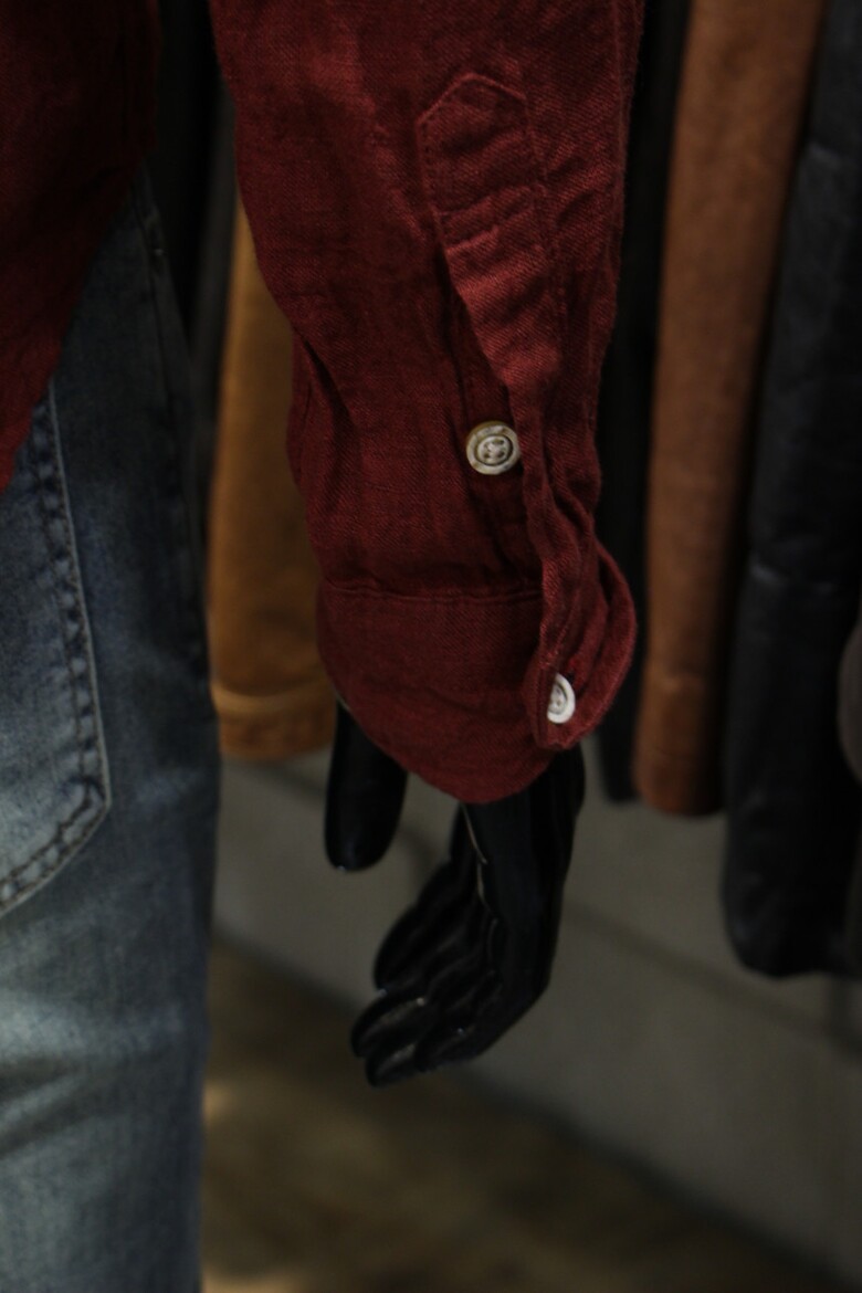 강렬한 레드컬러의 워싱린넨셔츠입니다