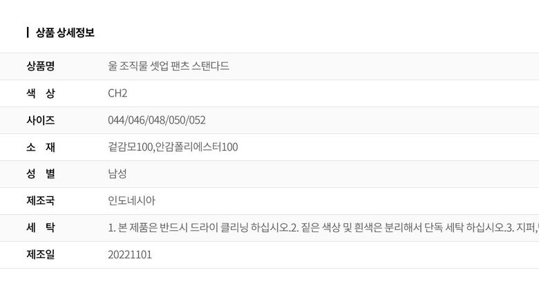 | 6. 세탁방법 및 취급시 주의사항 | 상세설명 참조 |