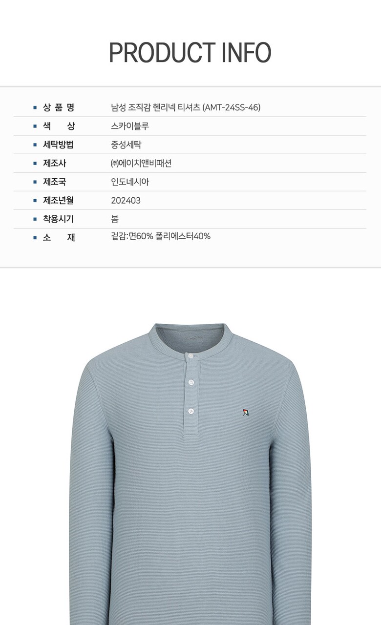 아놀드파마 남성 조직감 헨리넥 티셔츠_SB
