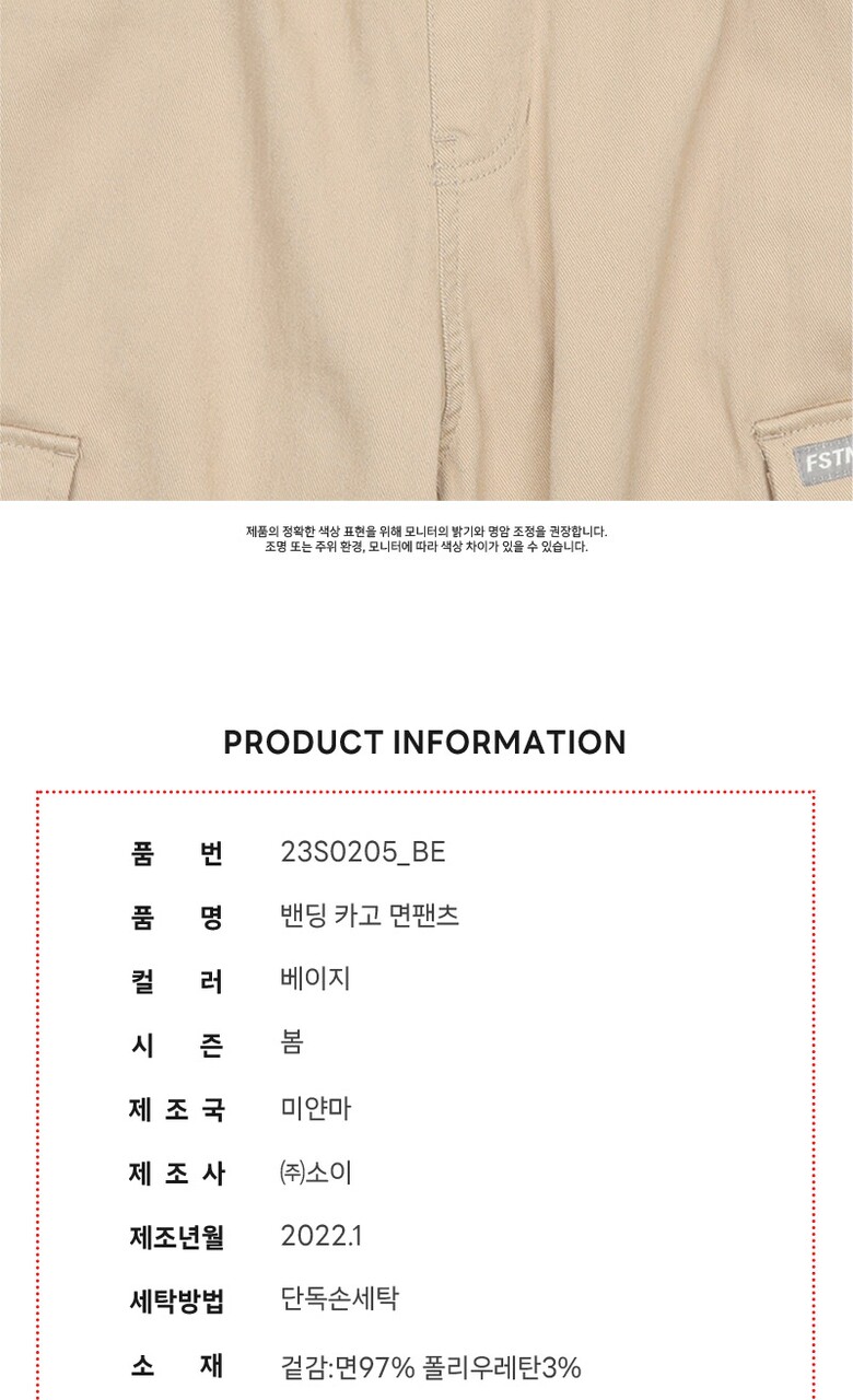 남아 밴딩 카고 면팬츠 23S0205_BE