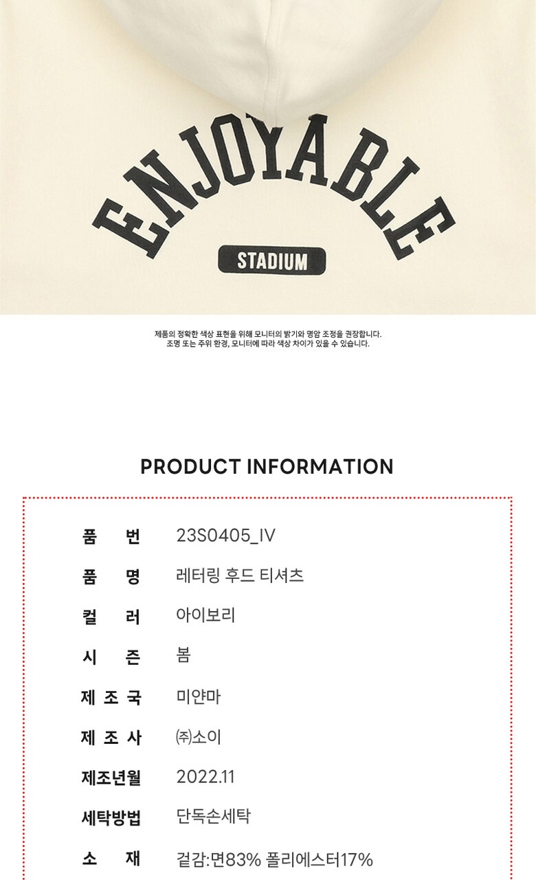 남아 레터링 후드 티셔츠 23S0405_IV