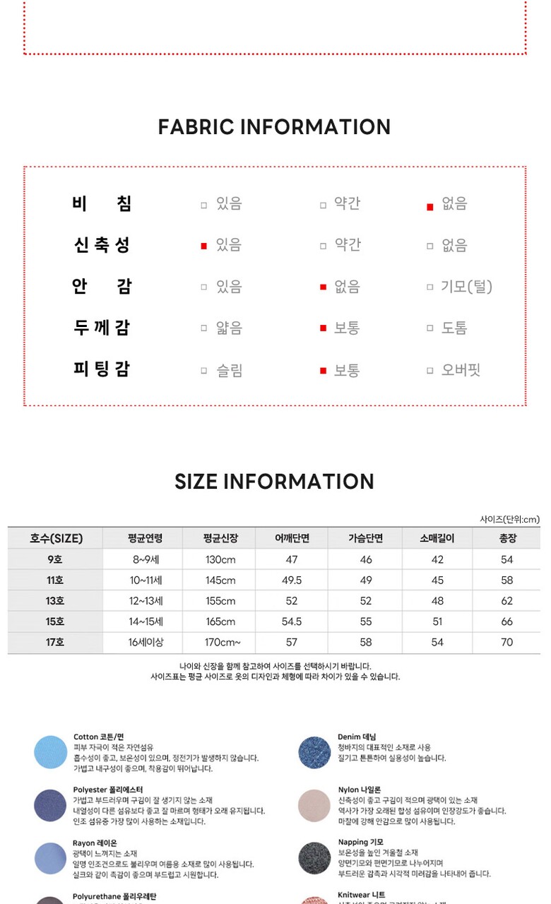 1. 제품 소재 (섬유의 조성 또는 혼용률을 백분율로 표시, 기능성인 경우 성적서 또는 허가서) | 겉감:면83% 폴리에스터17% |