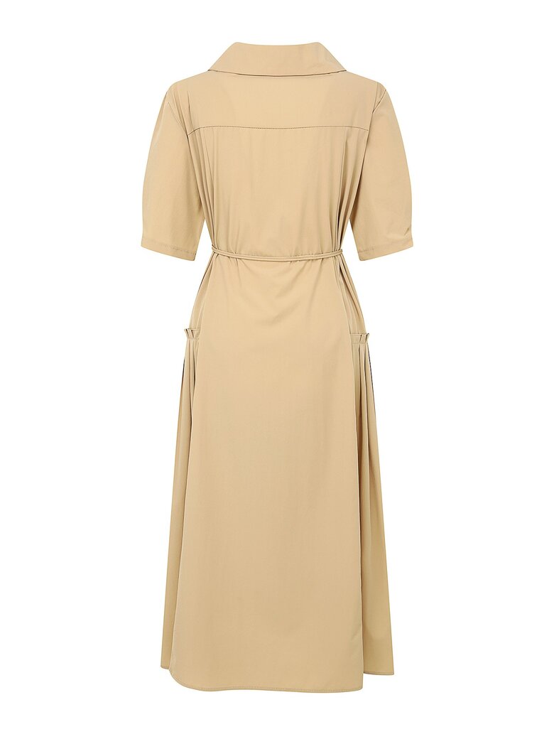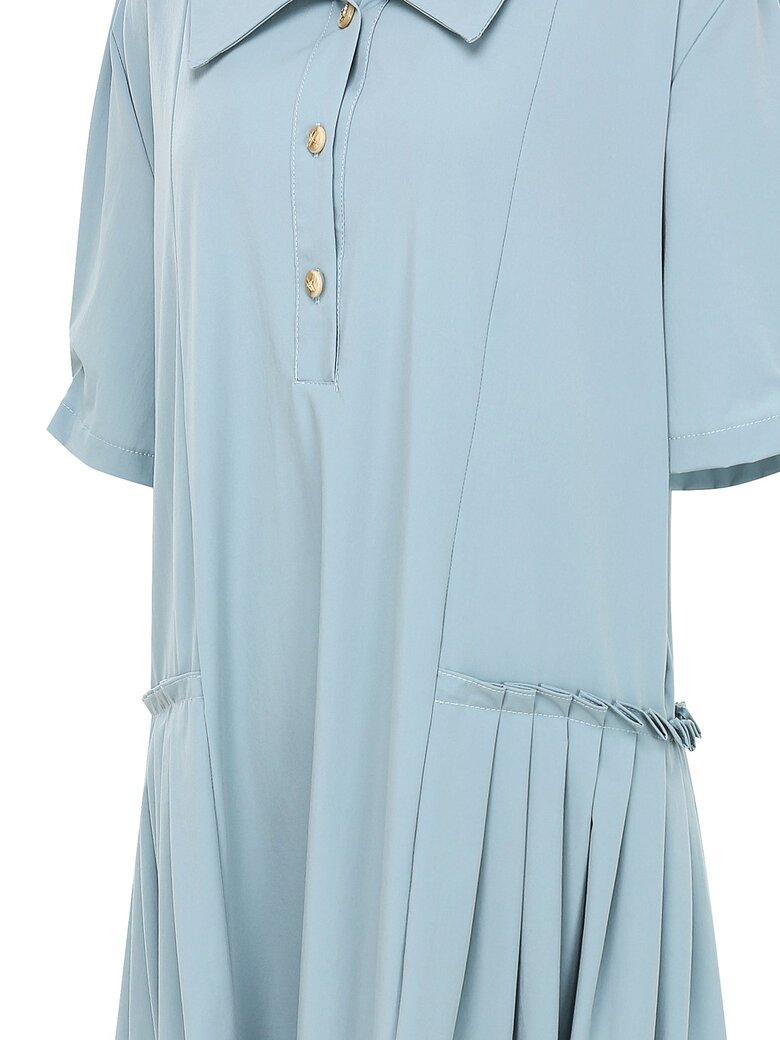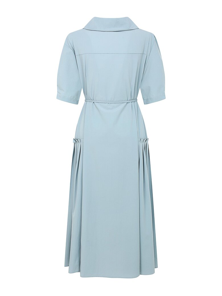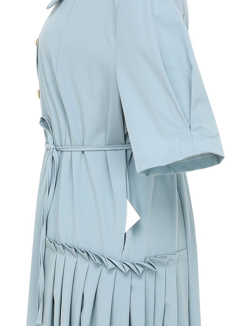 사이드 플리츠 디테일이 포인트인 와이드 칼라 롱 원피스 입니다.
