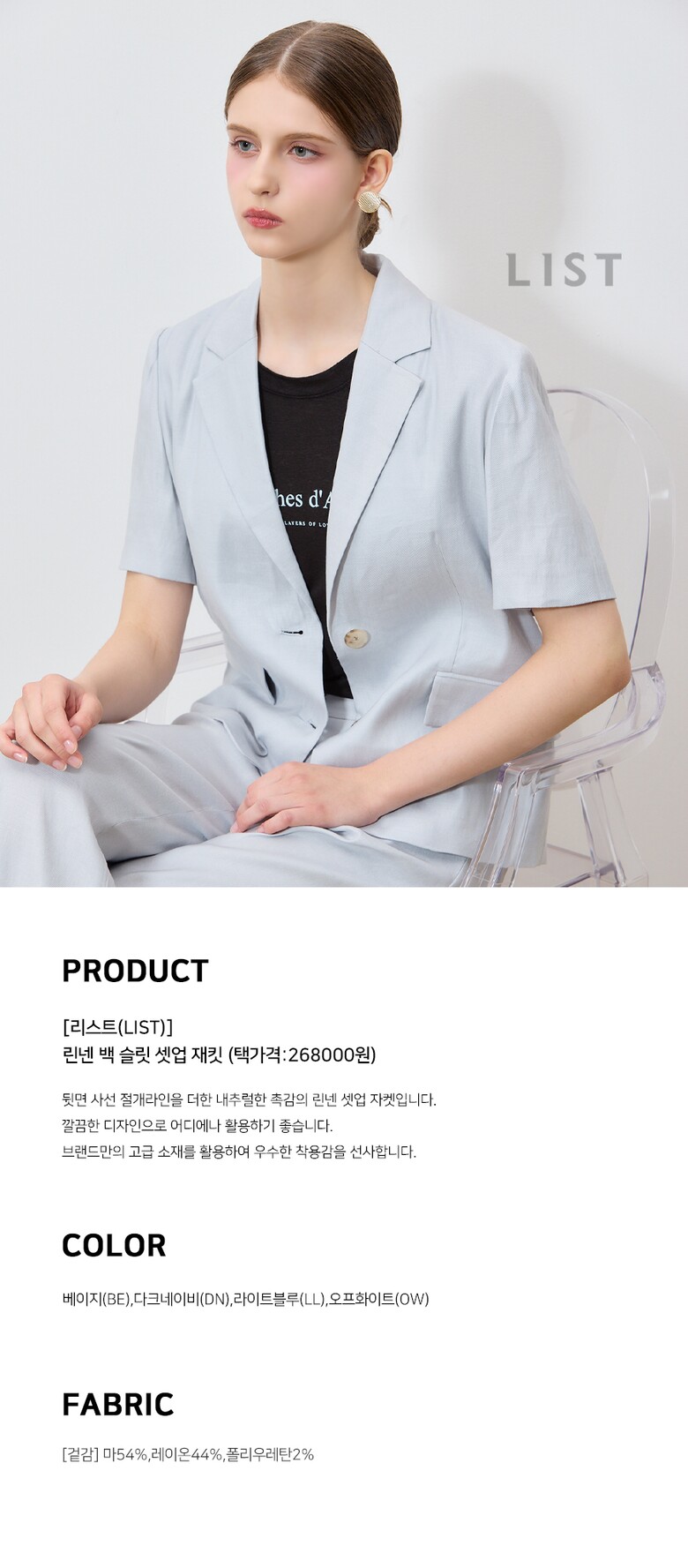 [리스트(LIST)] 고품격 린넨 백 슬릿 셋업 재킷 (택가격: 268000원)