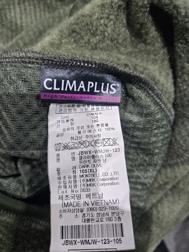 | 1. 제품 소재 (섬유의 조성 또는 혼용률을 백분율로 표시, 기능성인 경우 성적서 또는 허가서) | 폴리에스터100%(클리마플러스 100) |