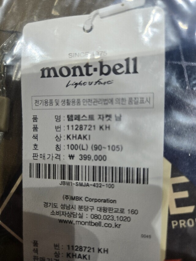 | 4. 제조사 | MontbellJapan |