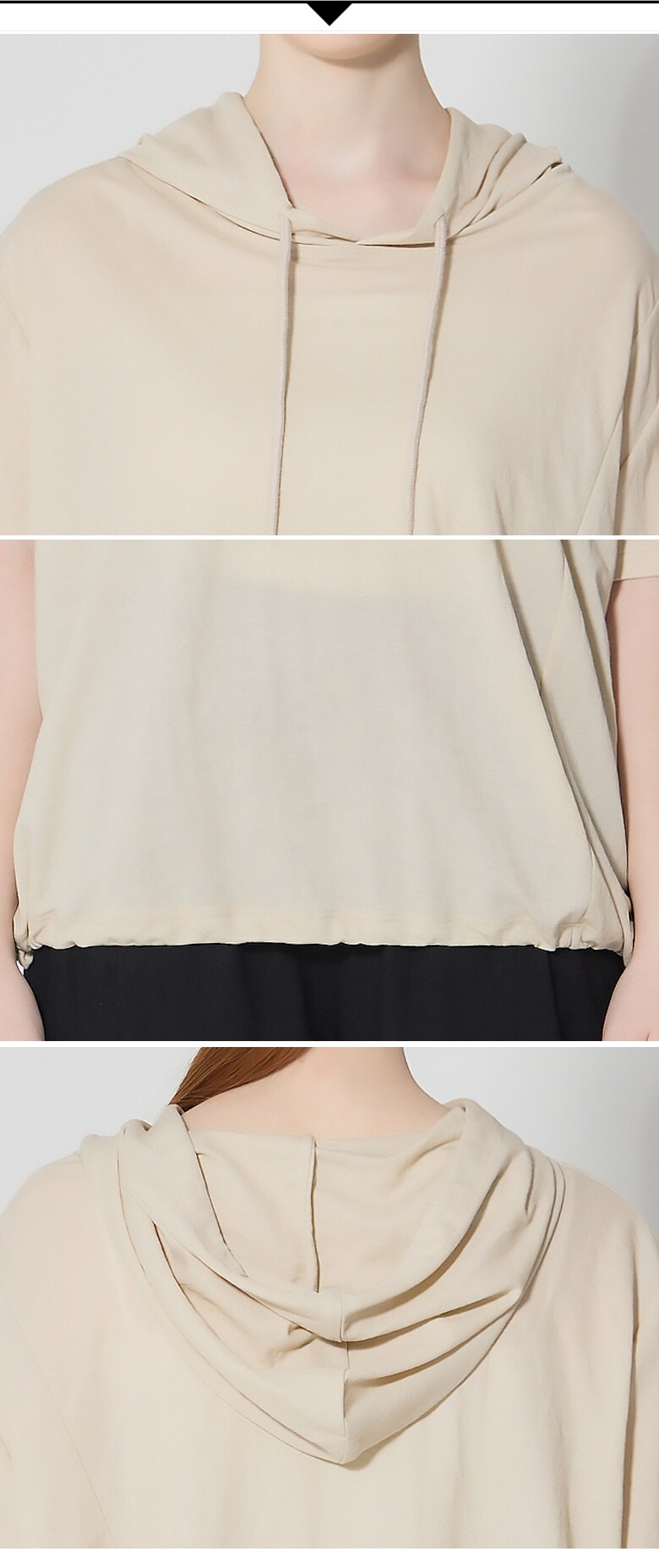 ITEM : 후드 밑단 스트링 반팔 티셔츠
