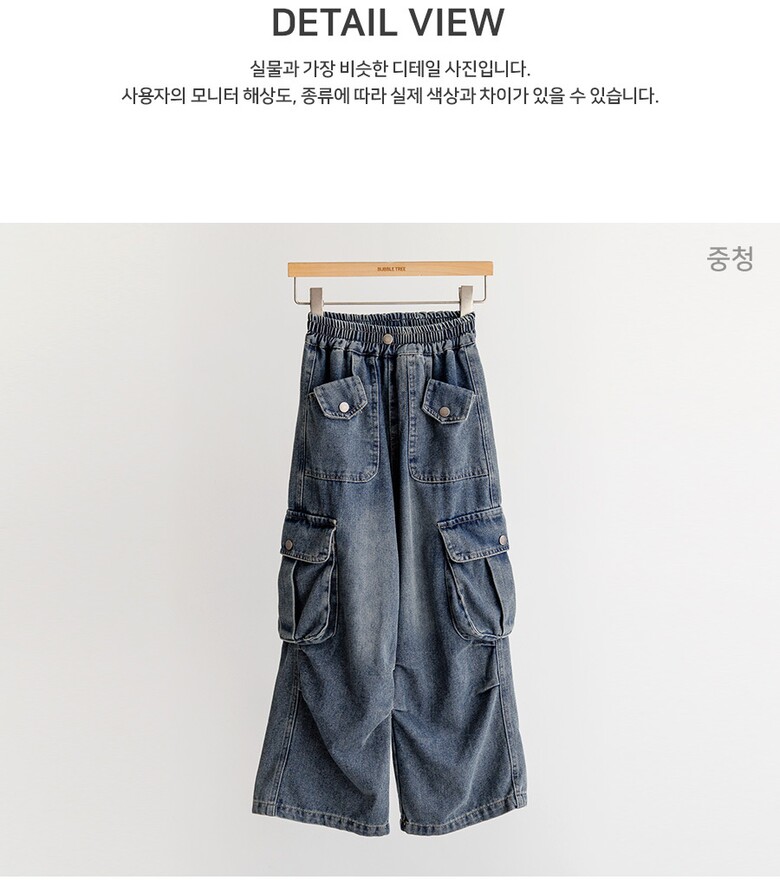 버블트리 [P426]블록카고데님팬츠