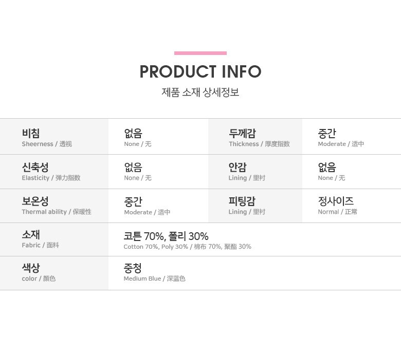 | 1. 제품 소재 (섬유의 조성 또는 혼용률을 백분율로 표시, 기능성인 경우 성적서 또는 허가서) | 별도표시 |