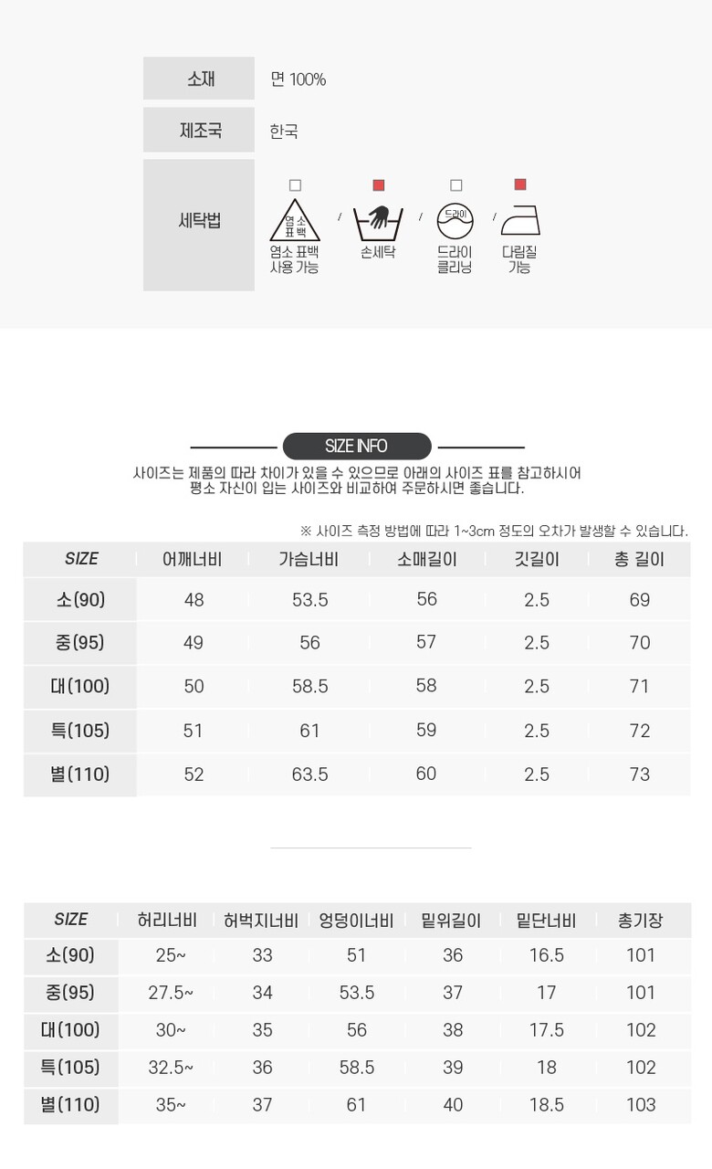 3. 치수 | 소(90),중(95),대(100),특(105),별(110) |