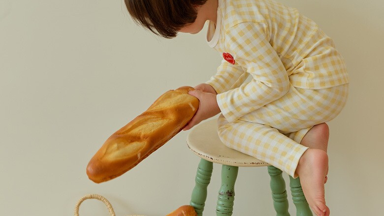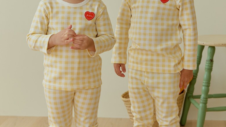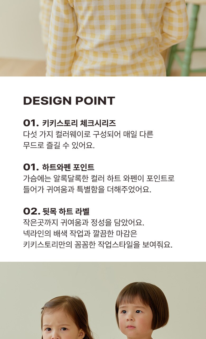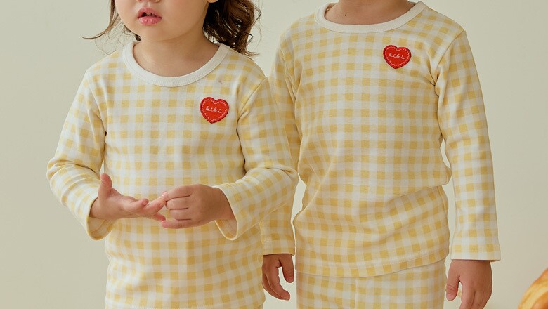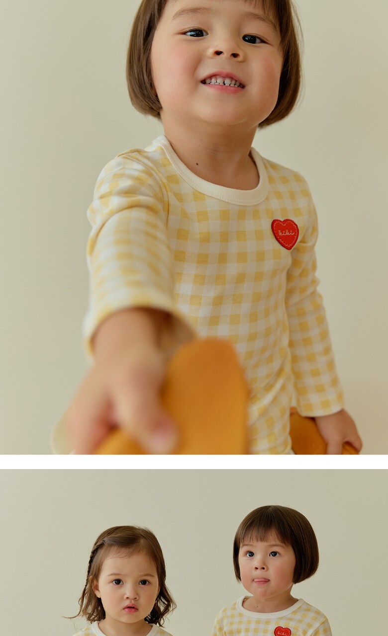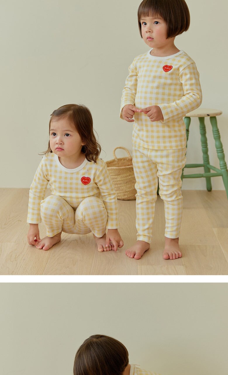 하트와펜 체크 옐로우 코튼스판 아기 내복 긴팔 가을 유아 아동 내의 실내복