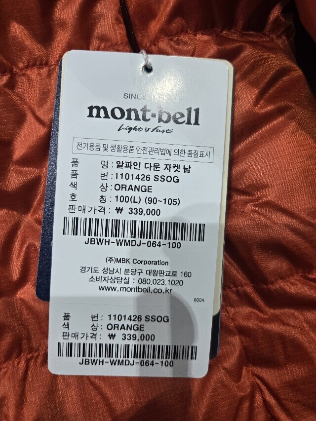 | 6. 세탁방법 및 취급시 주의사항 | Tag 고리 등의 날카로운 부분으로 인해 부상을 입을 우려가 있으니 착용 전에 반드시 Tag 고리를 분리해 주십시오. |