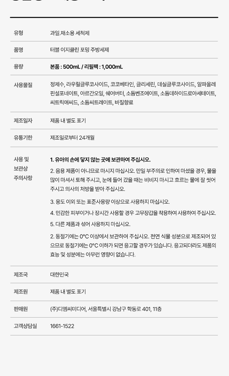 [Tubble] 이지클린 포밍 주방세제 본품 500ml 1+1