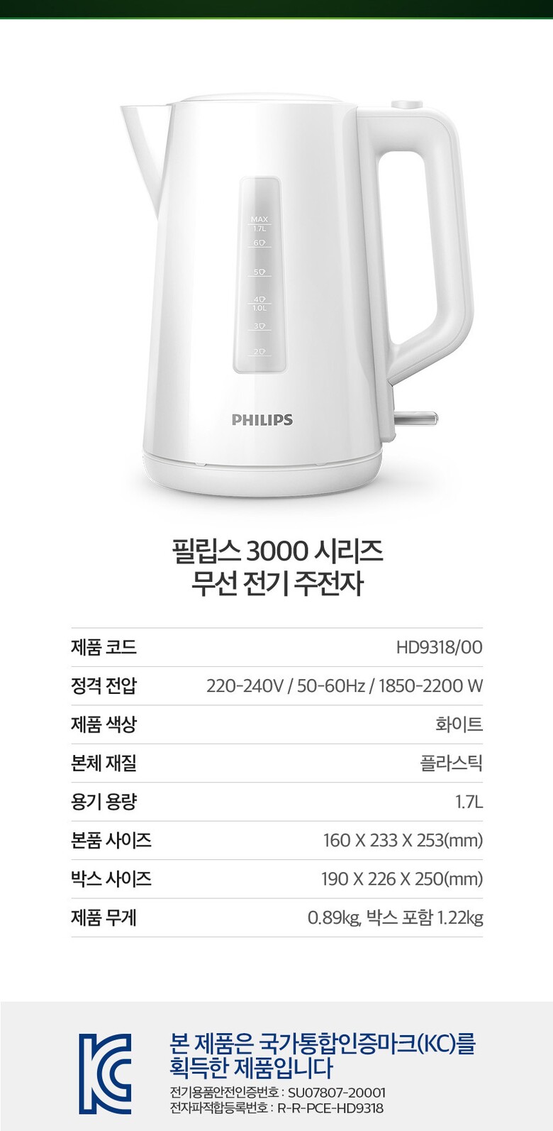 필립스 무선 전기포트 3000 시리즈 HD9318/00