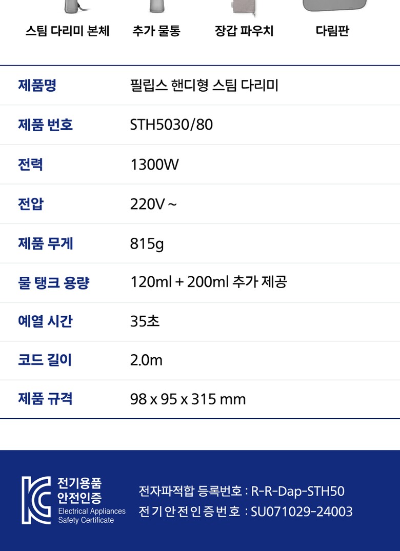 필립스 5000시리즈 핸디형 스팀 다리미 STH5030/80