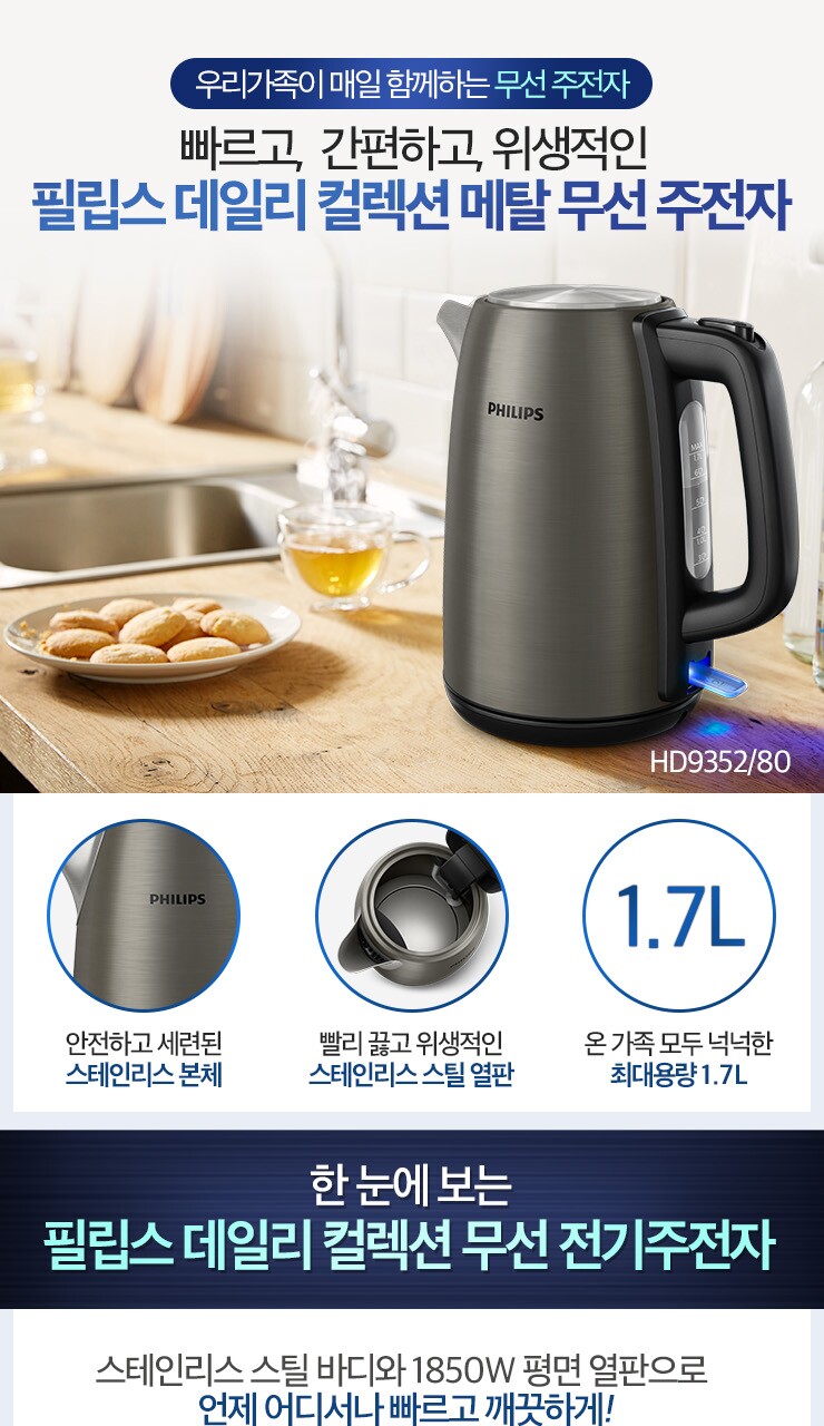 필립스 데일리 컬렉션 무선 주전자 HD9352/80