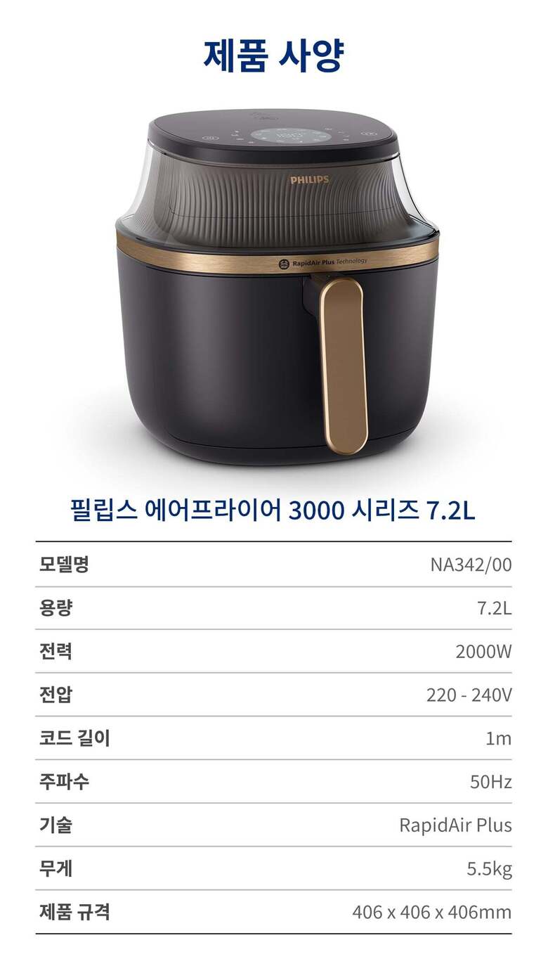 필립스 에어프라이어 3000시리즈 윈도우타입 7.2L NA342/00