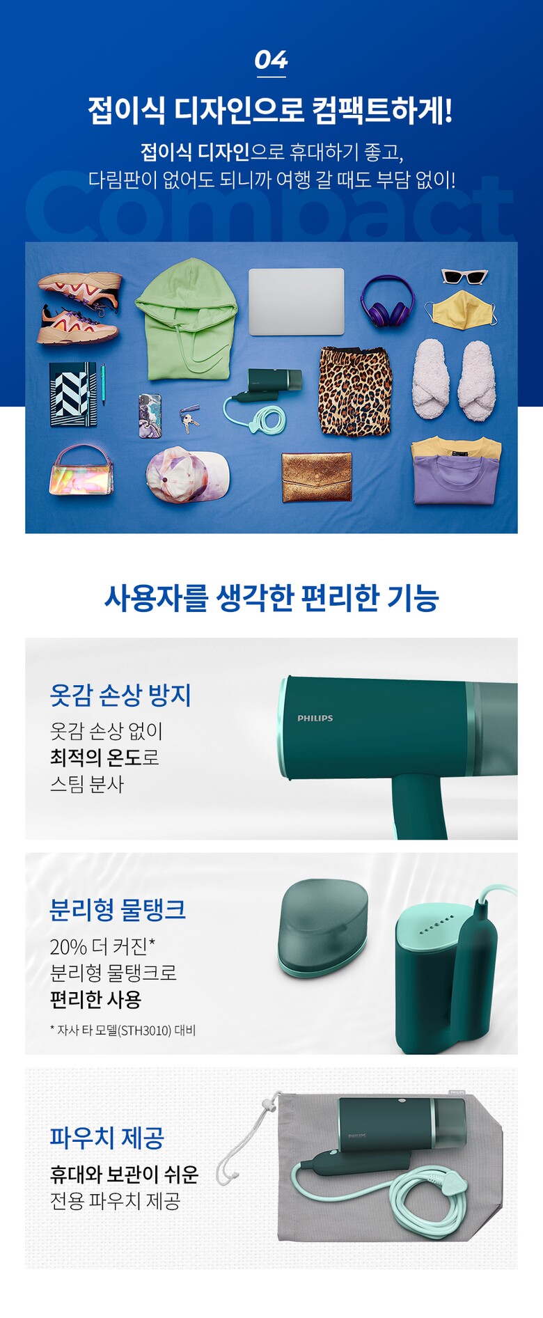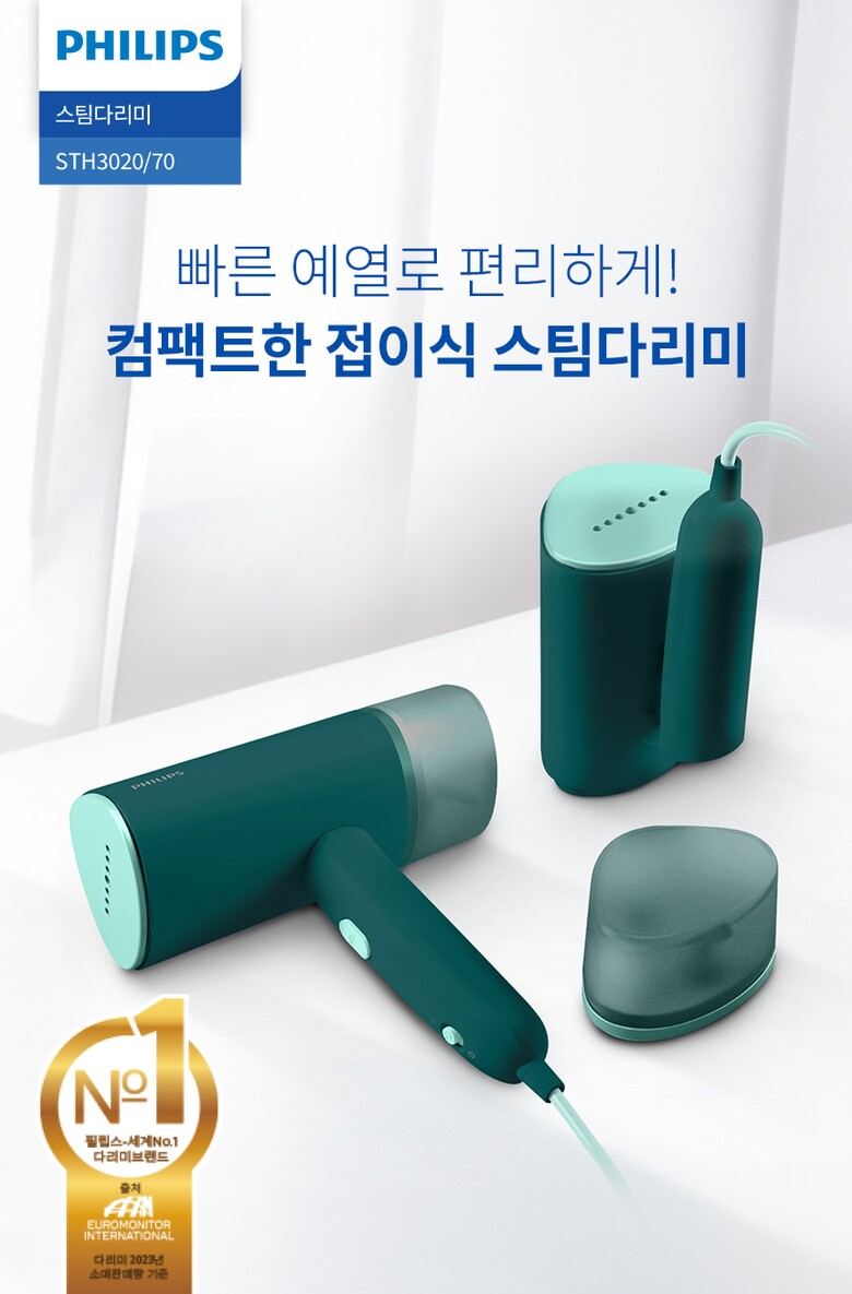 필립스 스팀다리미 핸디형 3000시리즈 민트 그린 STH3020/70