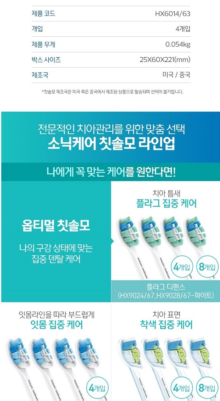 필립스 소닉케어 칫솔모 프로리절트 HX6014