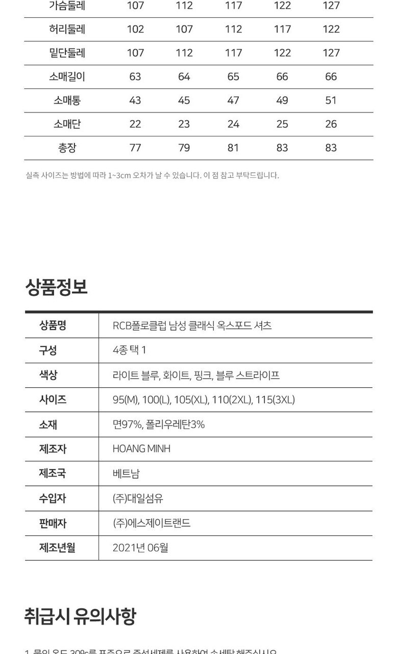 3. 치수 | 095(M),100(L),105(XL),110(2XL),115(3XL) |