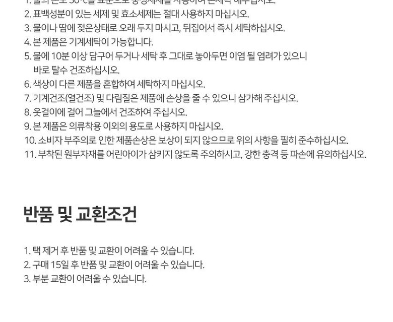 6. 세탁방법 및 취급시 주의사항 | 상품상세 참조 |
