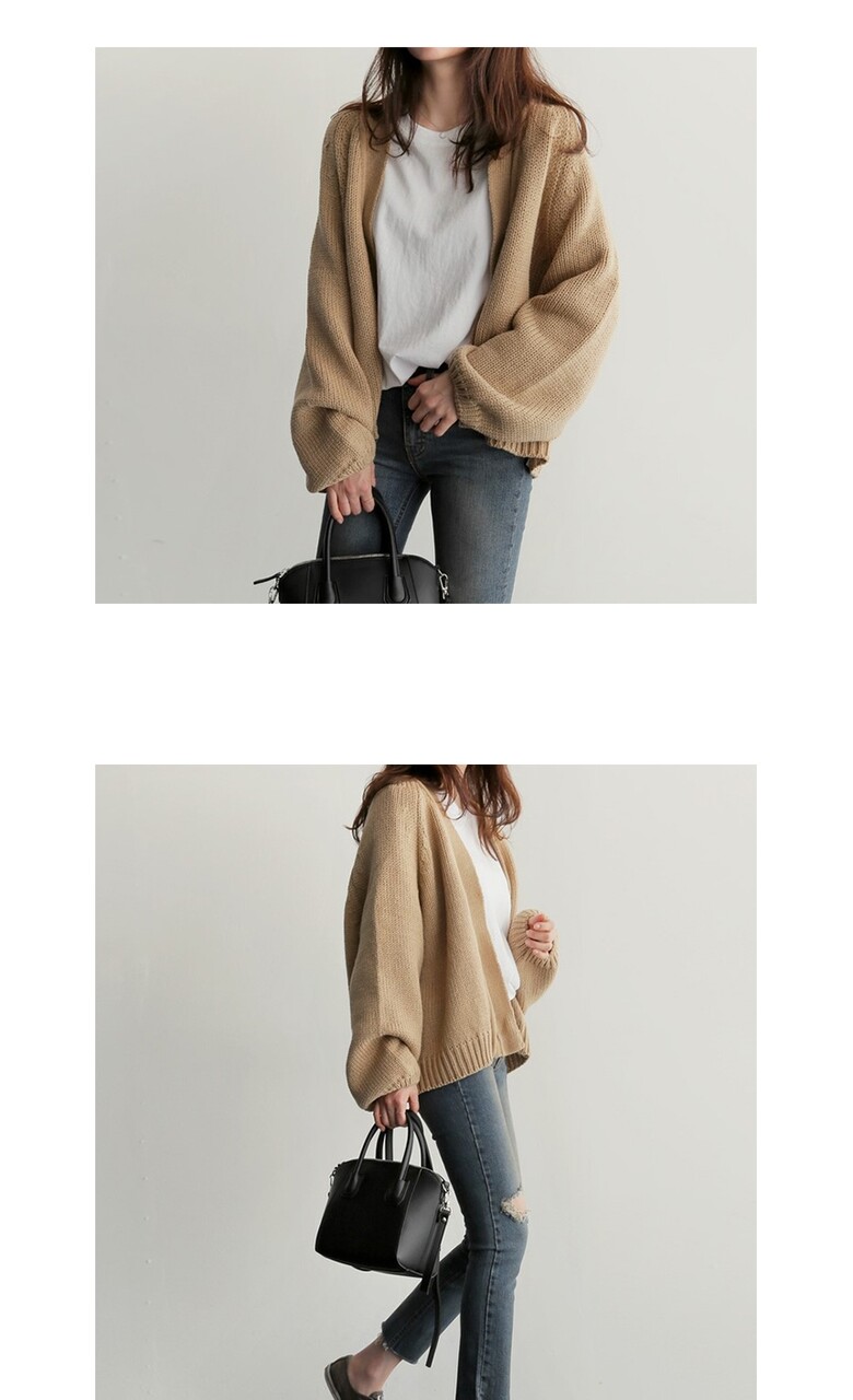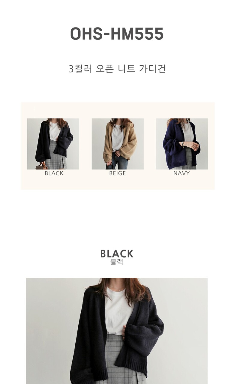 여성 3컬러 오픈 니트 가디건 캐주얼 오버핏 편한 오피스룩 무지 니트 간절기 아우터