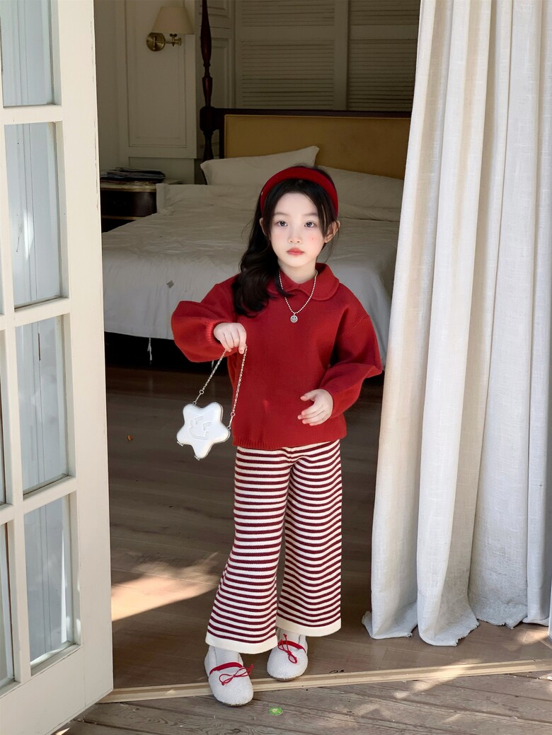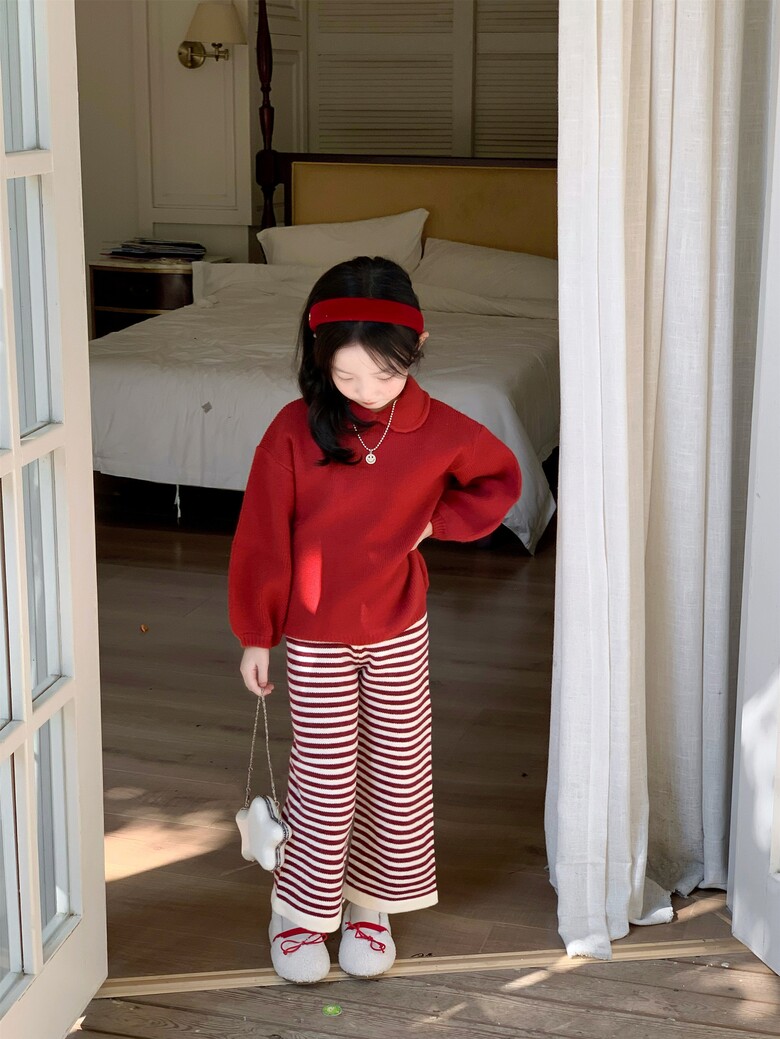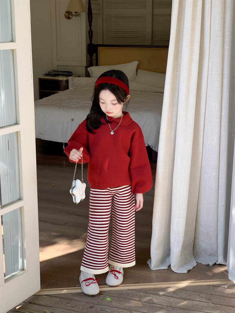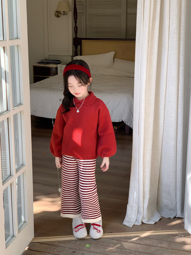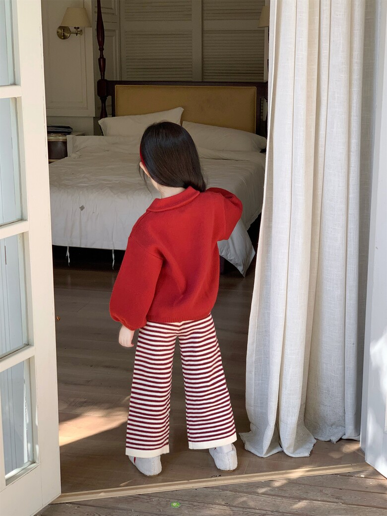 [예약발송] 스트라이프 와이드 니트 팬츠 R15452