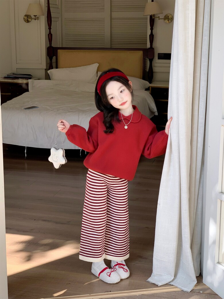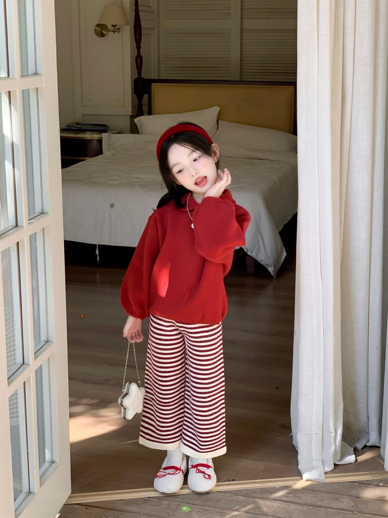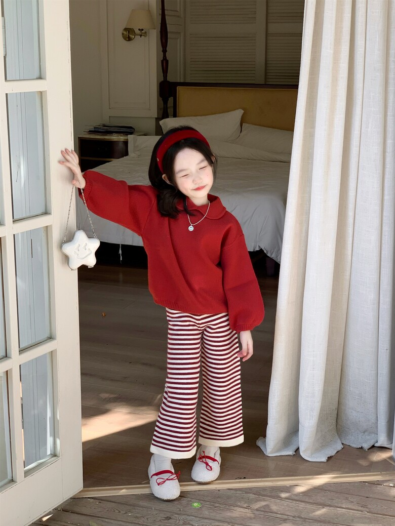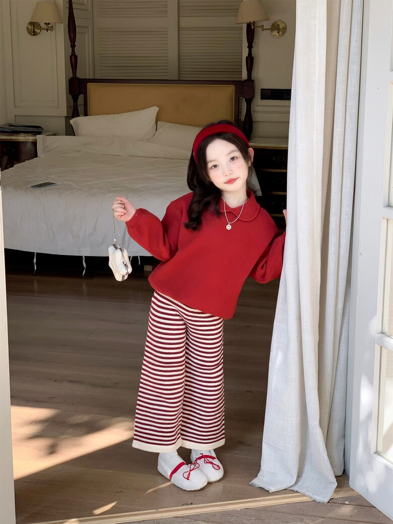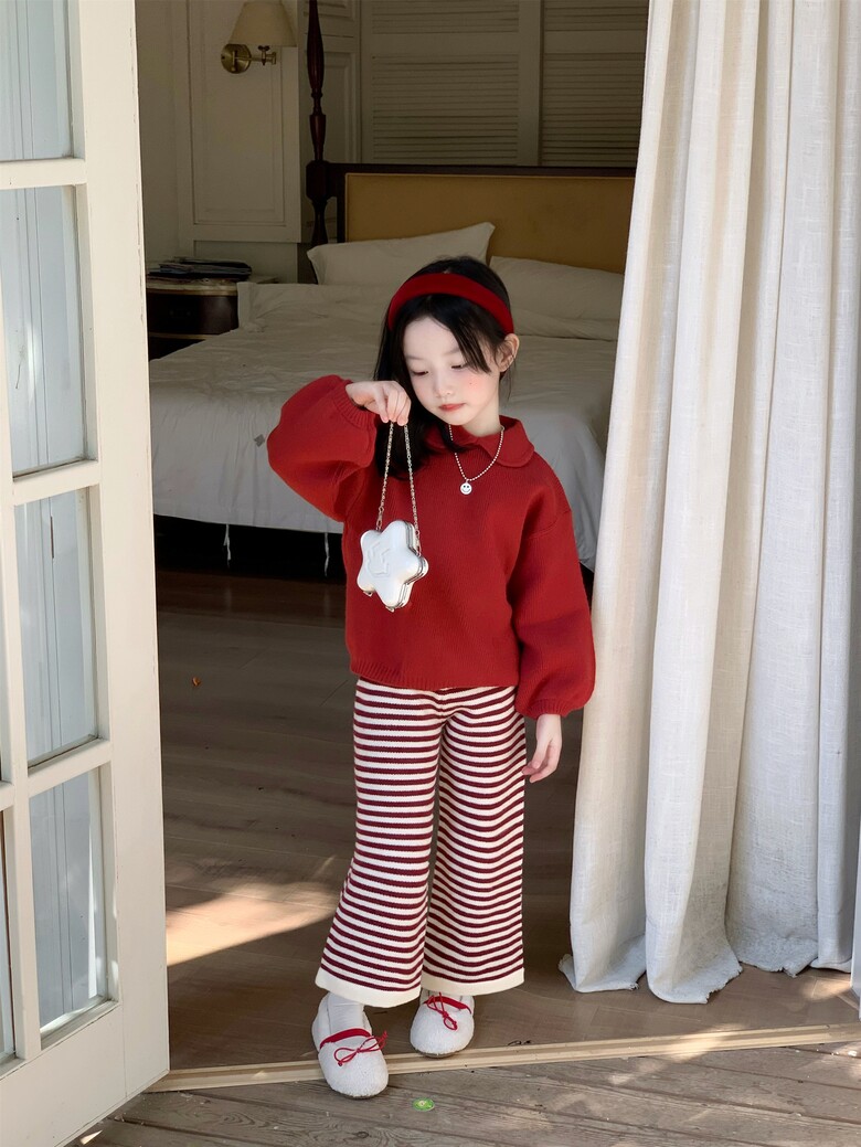 [예약발송] 스트라이프 와이드 니트 팬츠 R15452