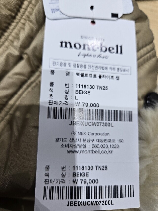 | 2. 소재 | 표지:20 디닐 나일론 립스톱 [발수가공] 안감:샤 미스 [폴리 에스텔] 충전재:엑셀로프트 [폴리 에스텔] |