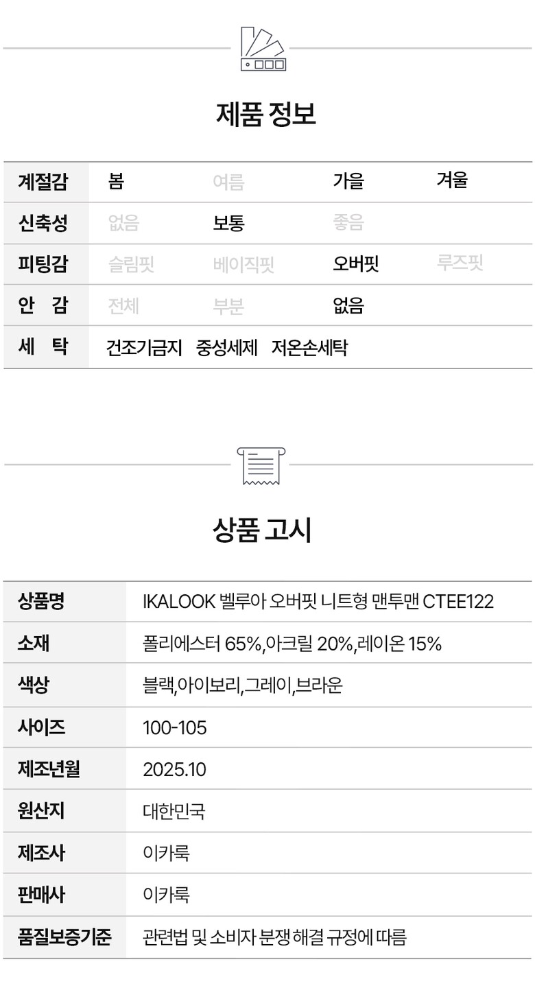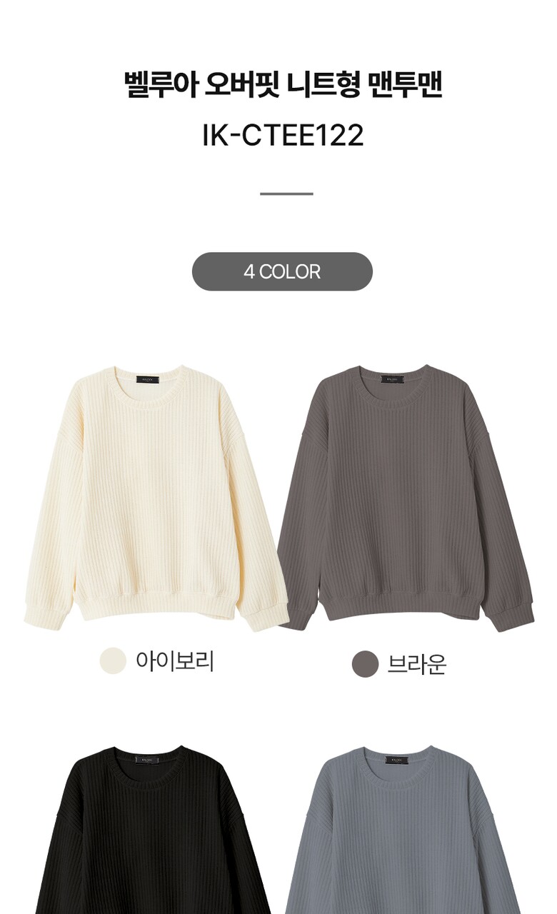 IKALOOK 벨루아 오버핏 니트형 맨투맨 CTEE122