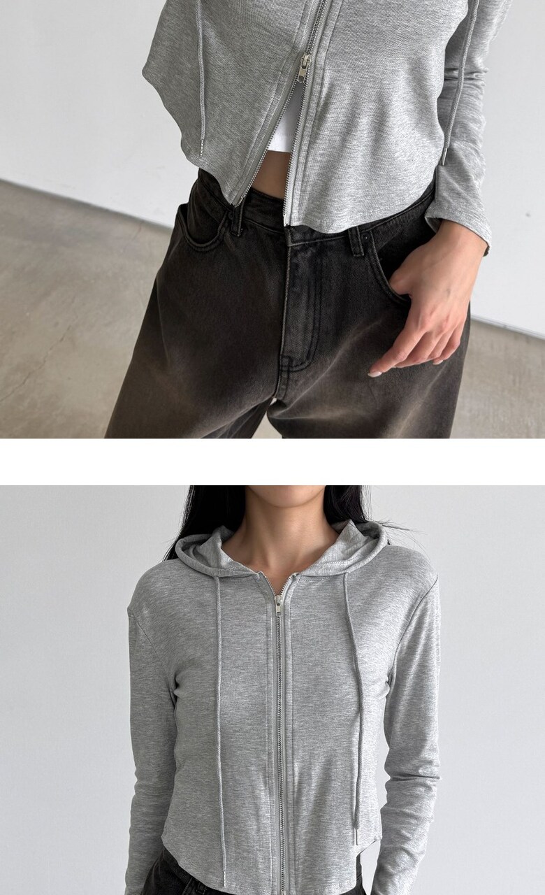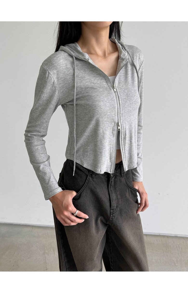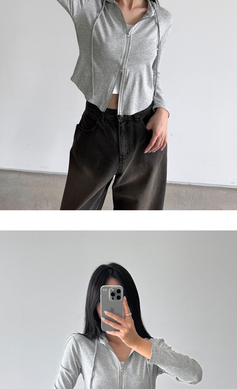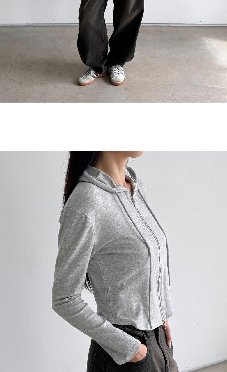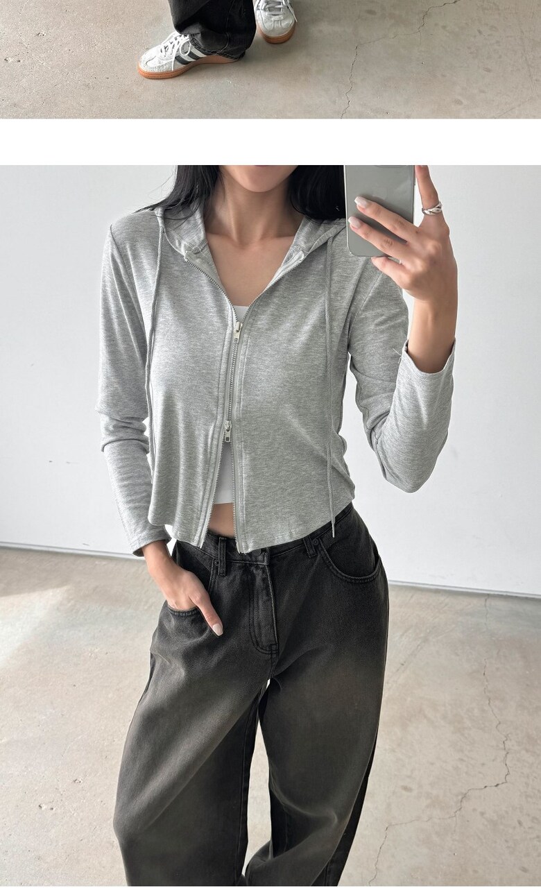 크롭 지퍼 후드 가디건 슬림핏 데일리 루즈 후디