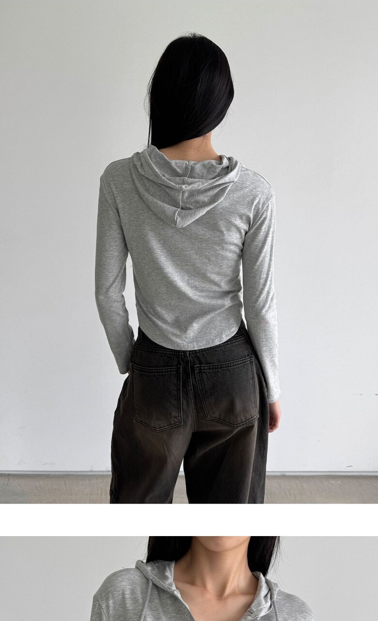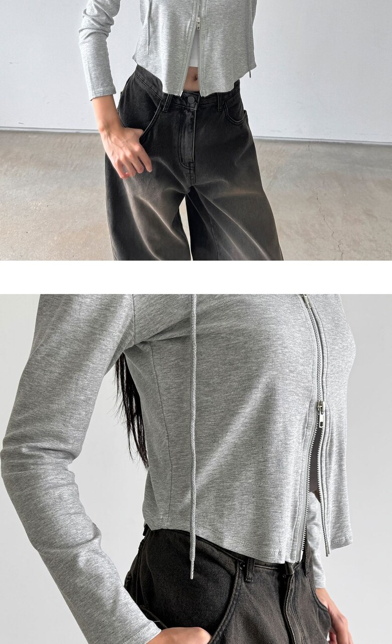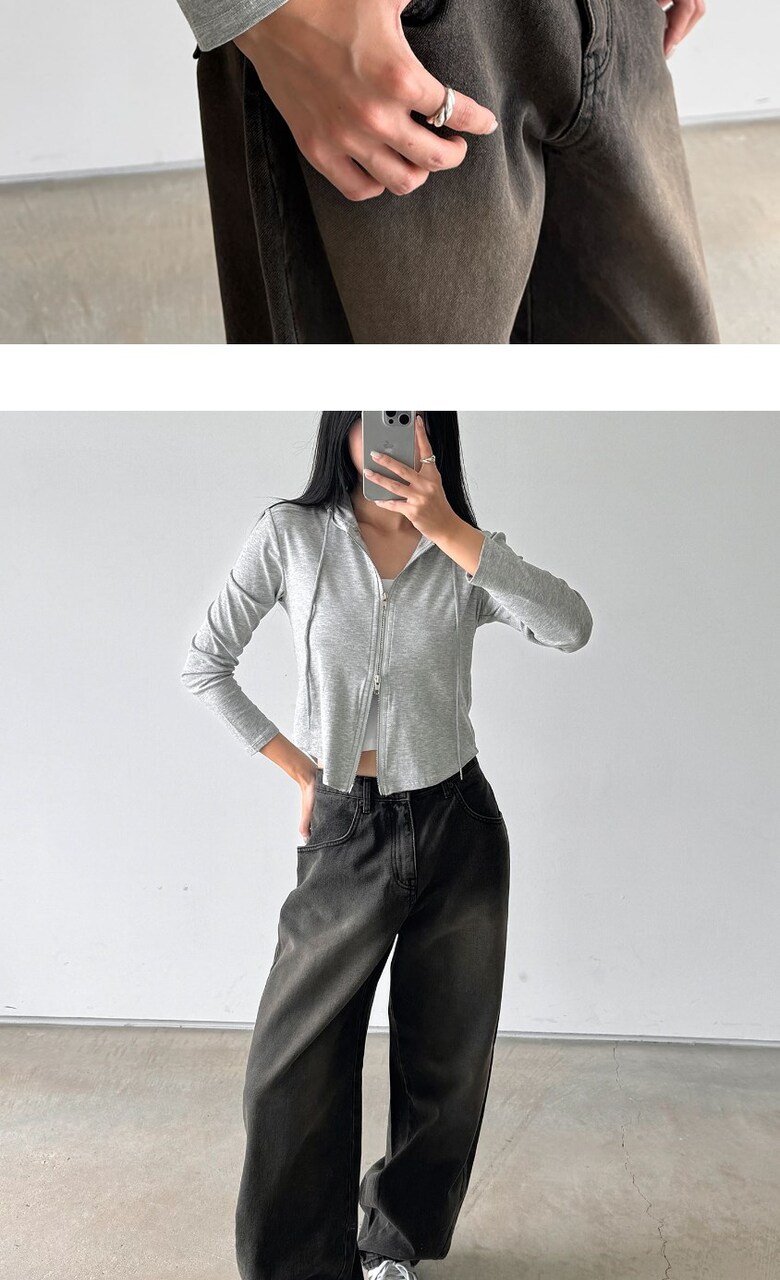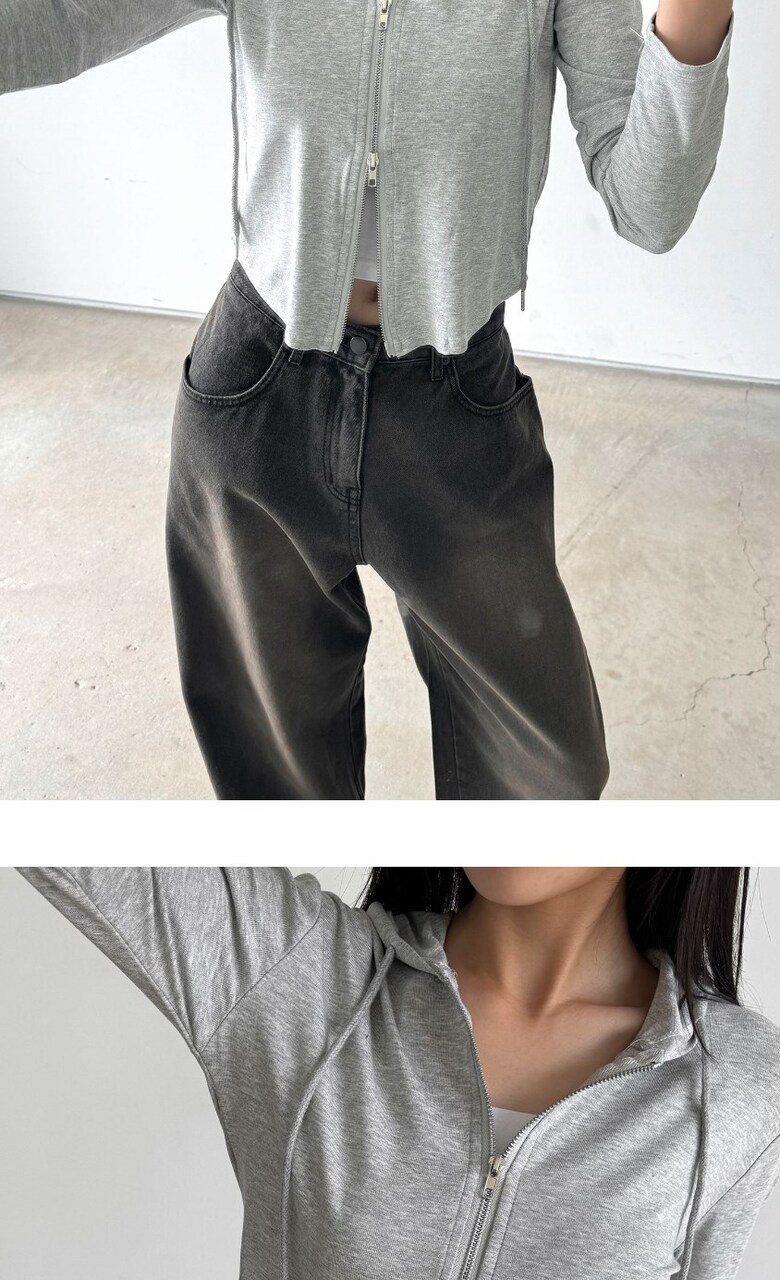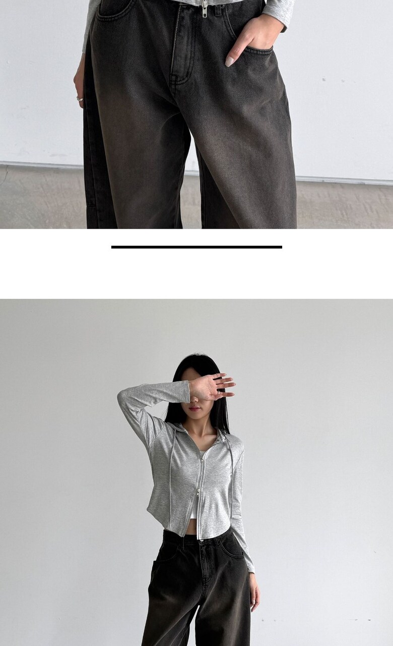 크롭 지퍼 후드 가디건 슬림핏 데일리 루즈 후디