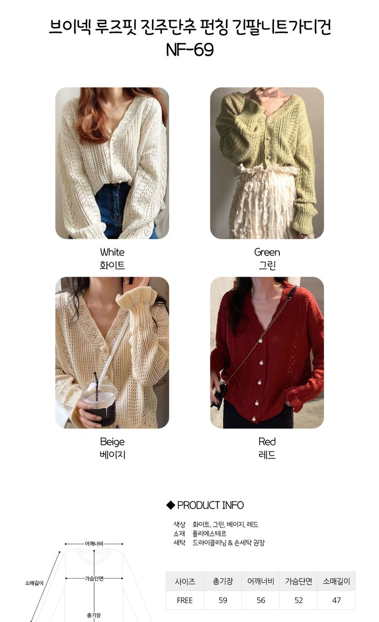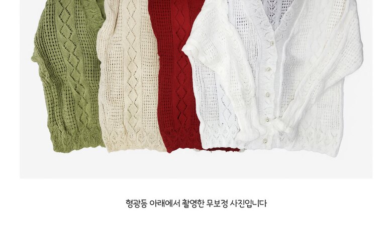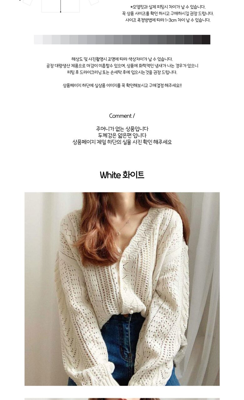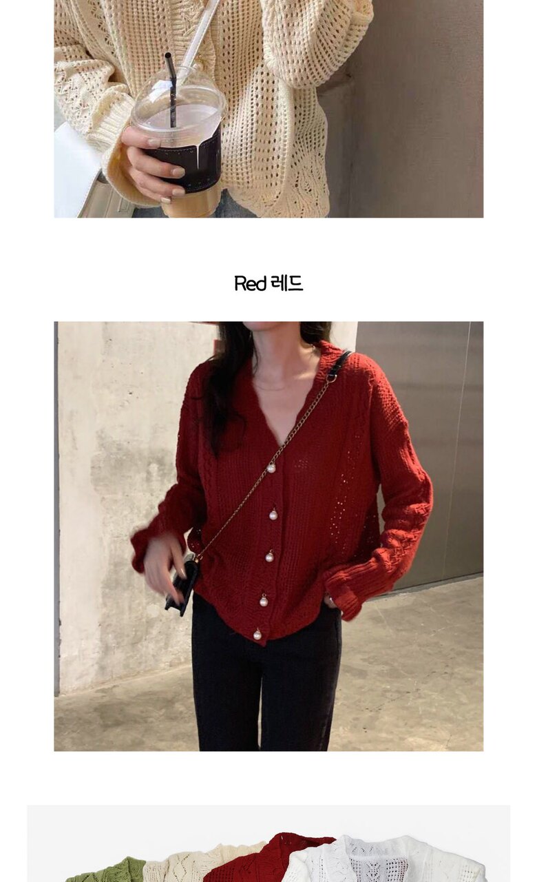 브이넥 루즈핏 진주단추 펀칭 긴팔니트가디건