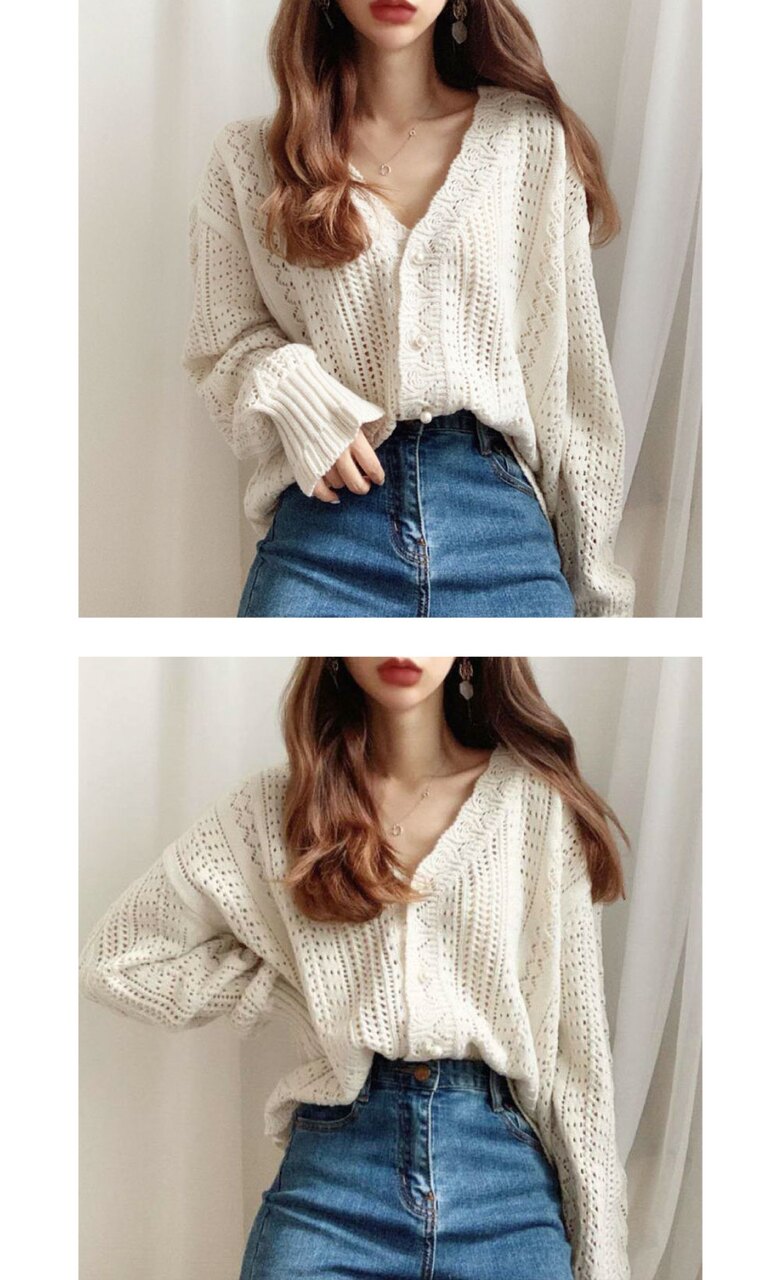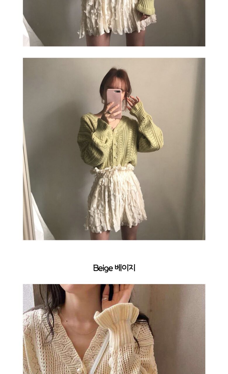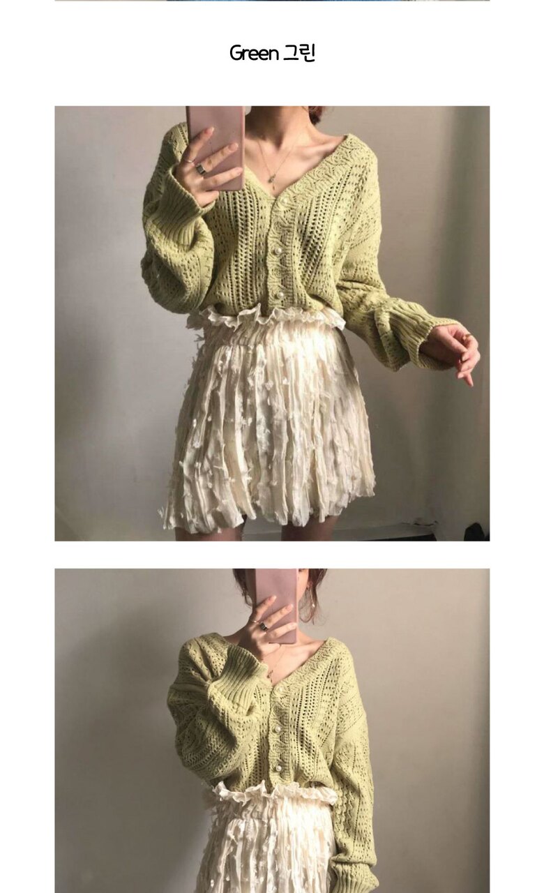 브이넥 루즈핏 진주단추 펀칭 긴팔니트가디건