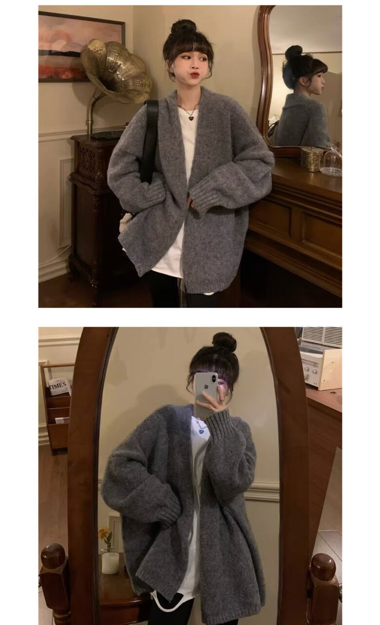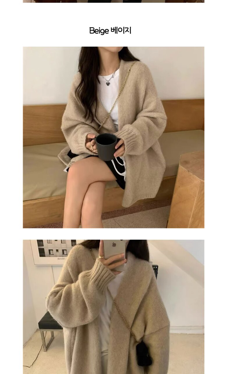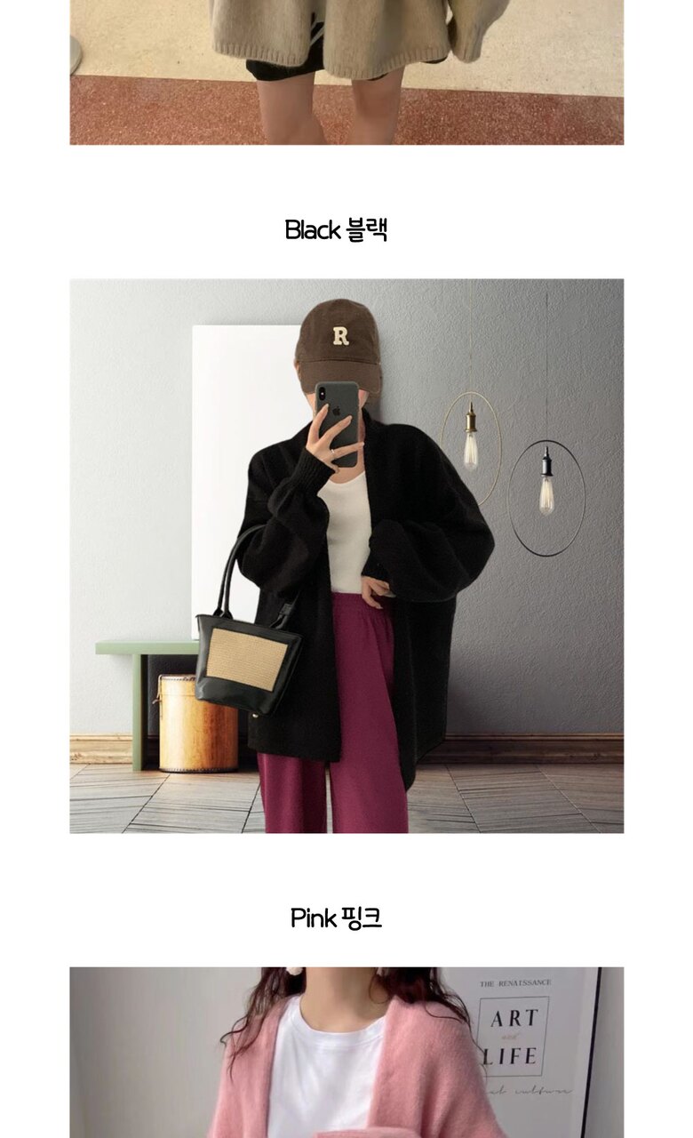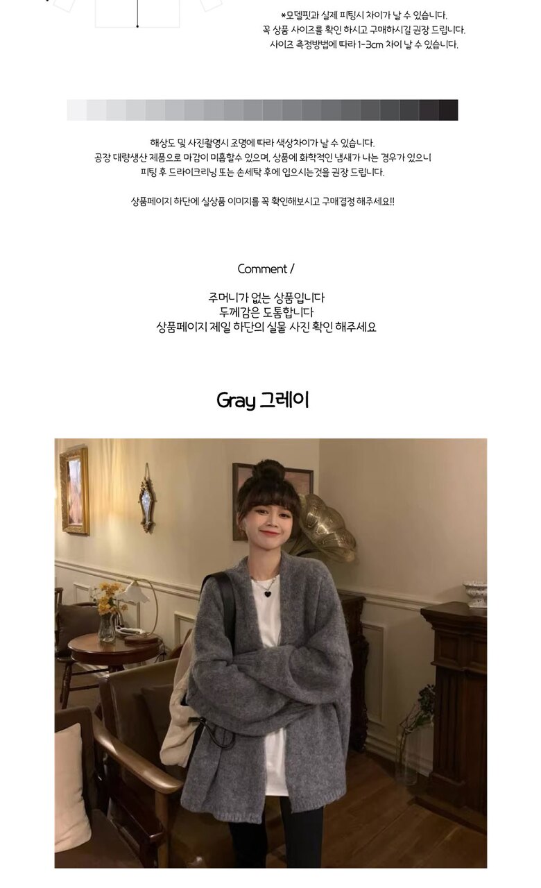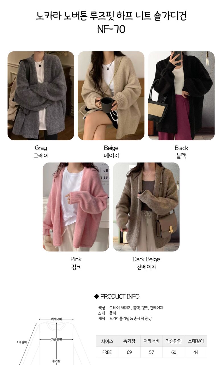 노카라 노버튼 루즈핏 하프 니트 숄가디건 오픈 봄가을