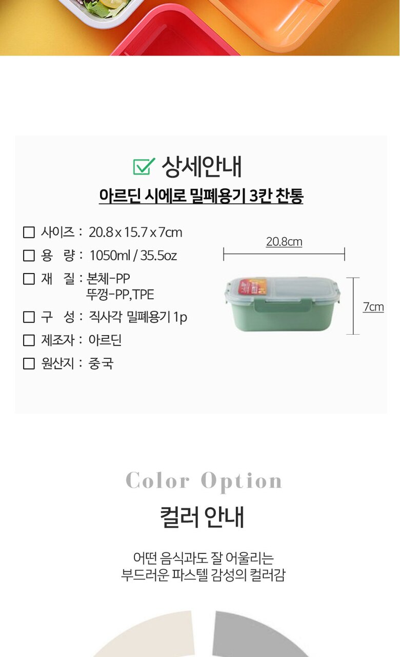1. 품명 및 모델명 | 아르딘 시에로 직사각 3칸 찬통 1050ml |