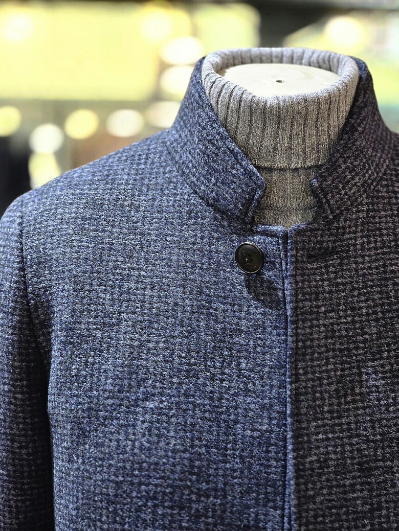 스탠드 칼라 디자인으로 깔끔하면서도 단정한 분위기를 연출하며,