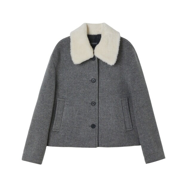 AQ4WTS64 탈착 퍼 카라 싱글 크롭 코트