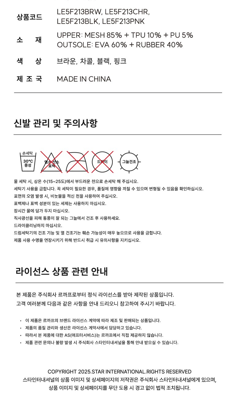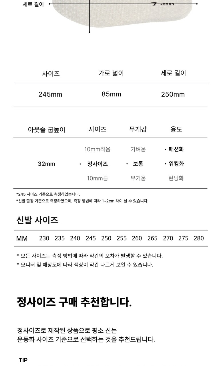1. 제품 소재 (운동화인 경우에는 겉감, 안감을 구분하여 표시) | 상세페이지참조 |
