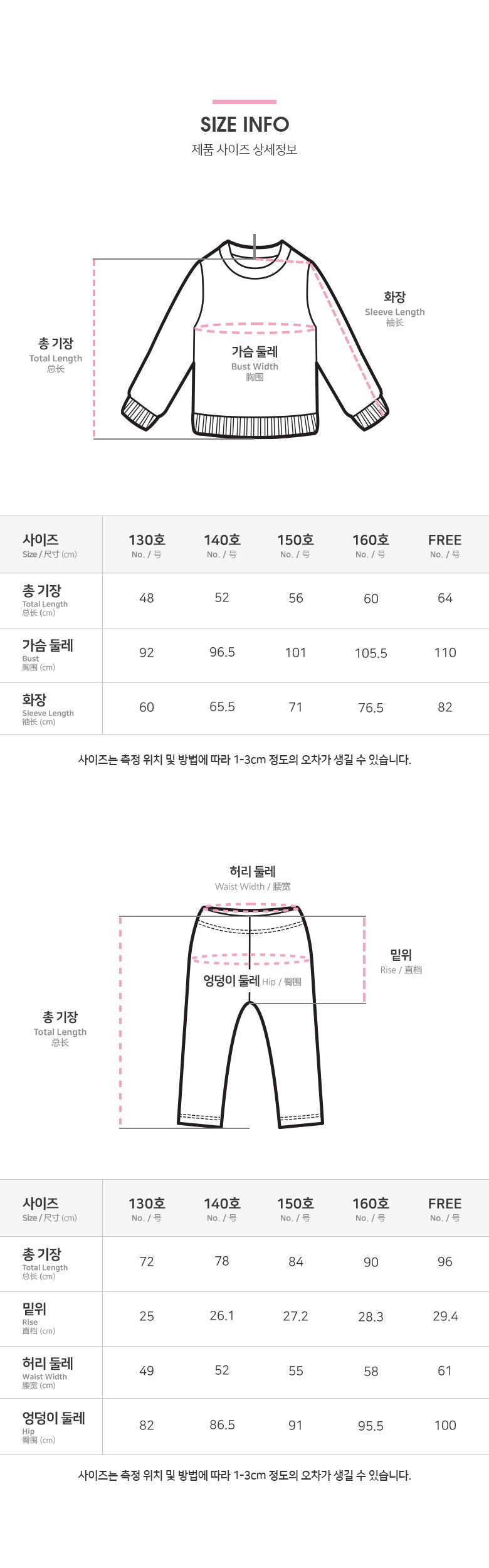 | 3. 치수 | 130, 140, 150, 160, FREE |