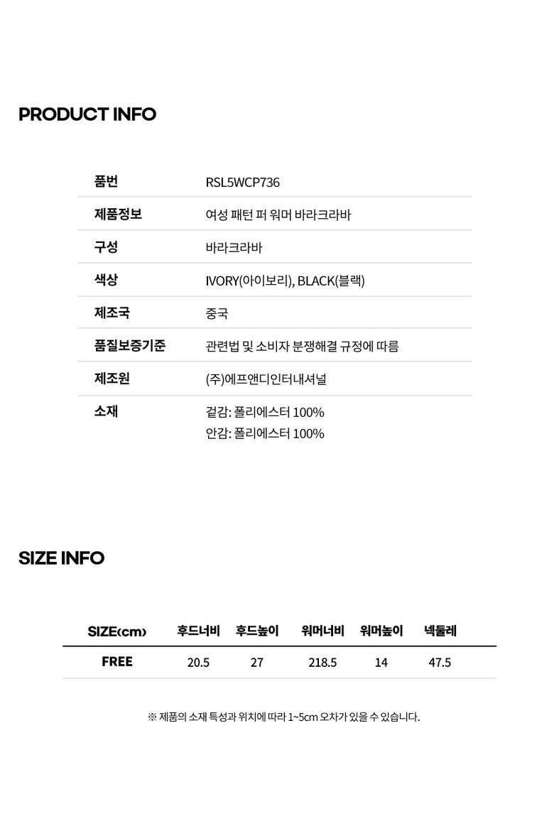 [ROSASEN] 로사센 여성 패턴 퍼 워머 바라크라바 - RSL5WCP736