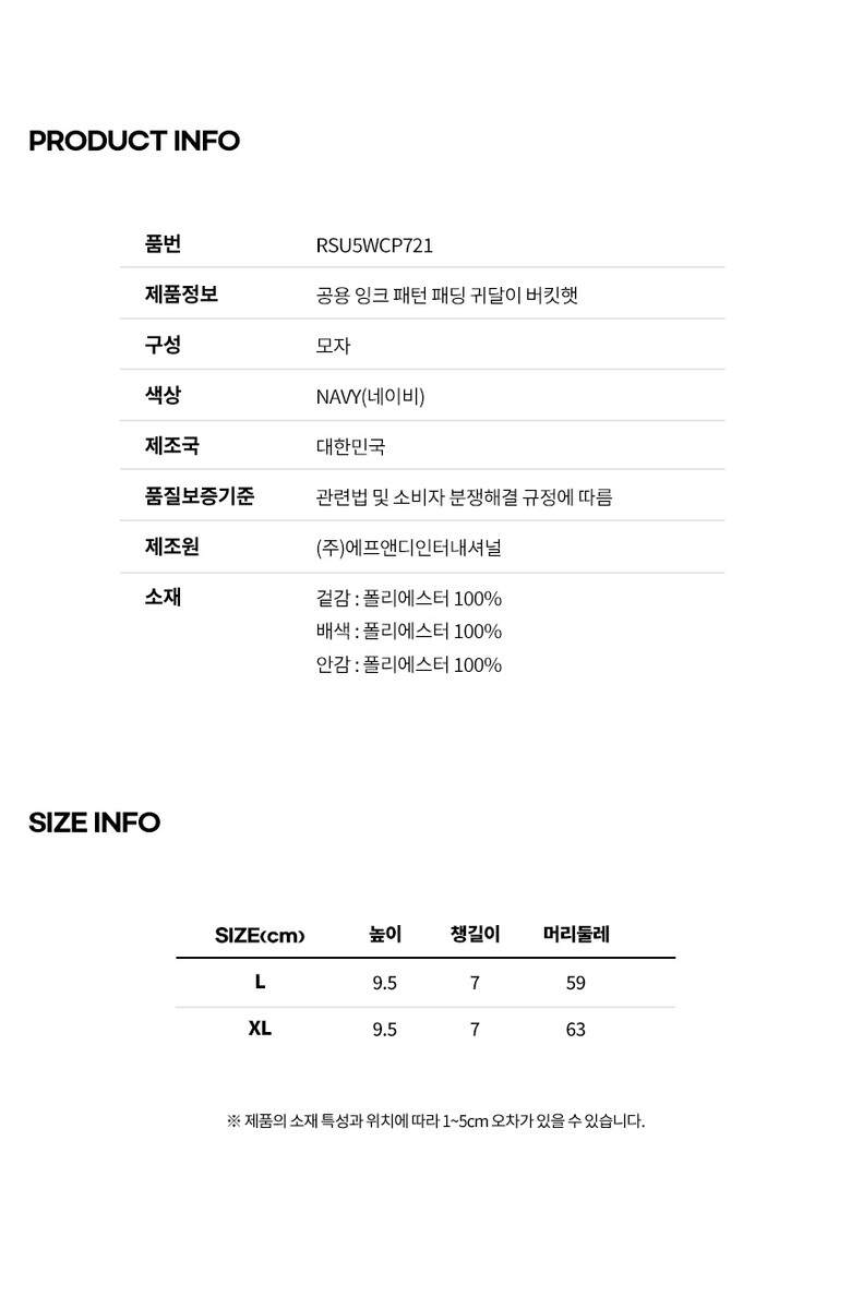 [ROSASEN] 로사센 잉크패턴 패딩 귀달이 버킷햇/모자 - RSU5WCP721