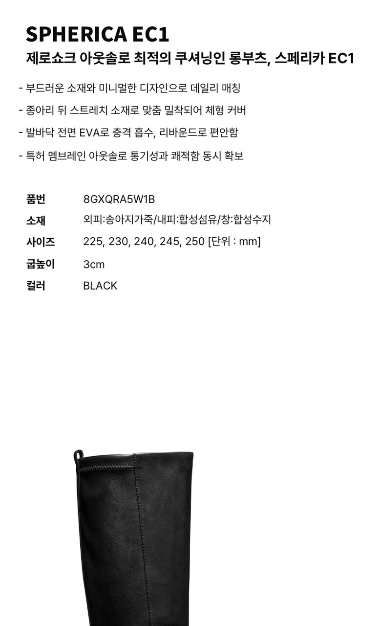 (제옥스) 8GXQRA5W1B 미끄럼방지 쿠션 경량 볼편안한 스페리카 여성 스판 롱부츠 굽(3CM)