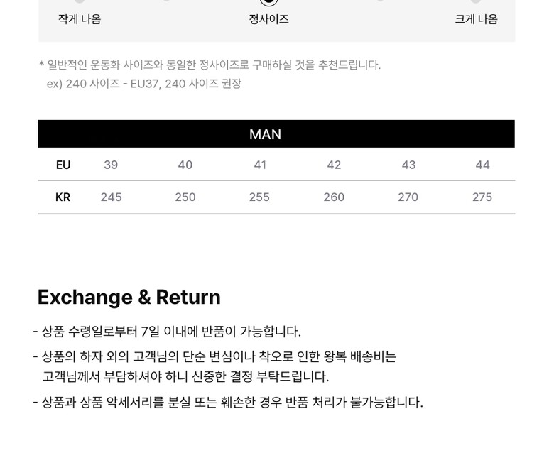 | 1. 제품 소재 (운동화인 경우에는 겉감, 안감을 구분하여 표시) | 상세페이지 참조 |