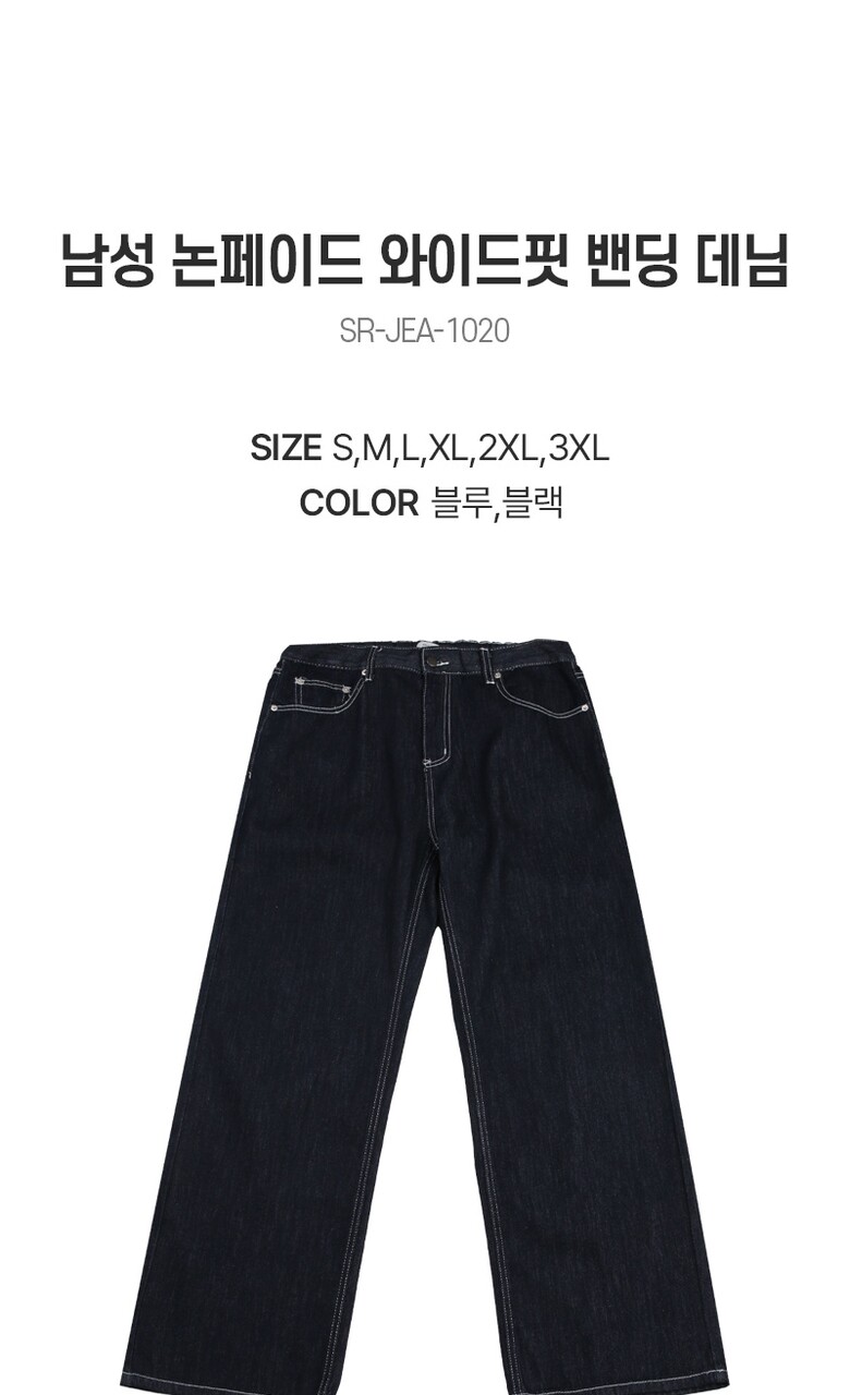 남성 논페이드 와이드핏 밴딩 데님 SR-JEA-1020